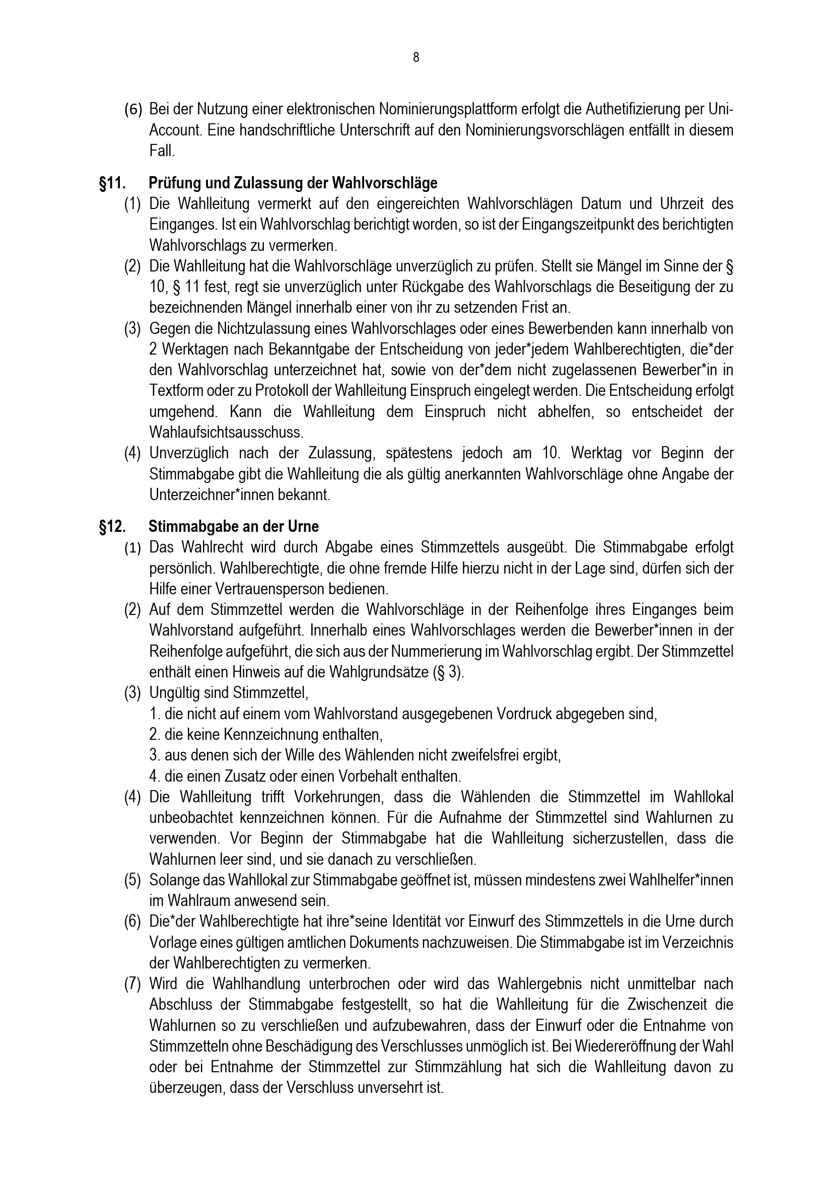 §11. Prüfung und Zulassung der Wahlvorschläge