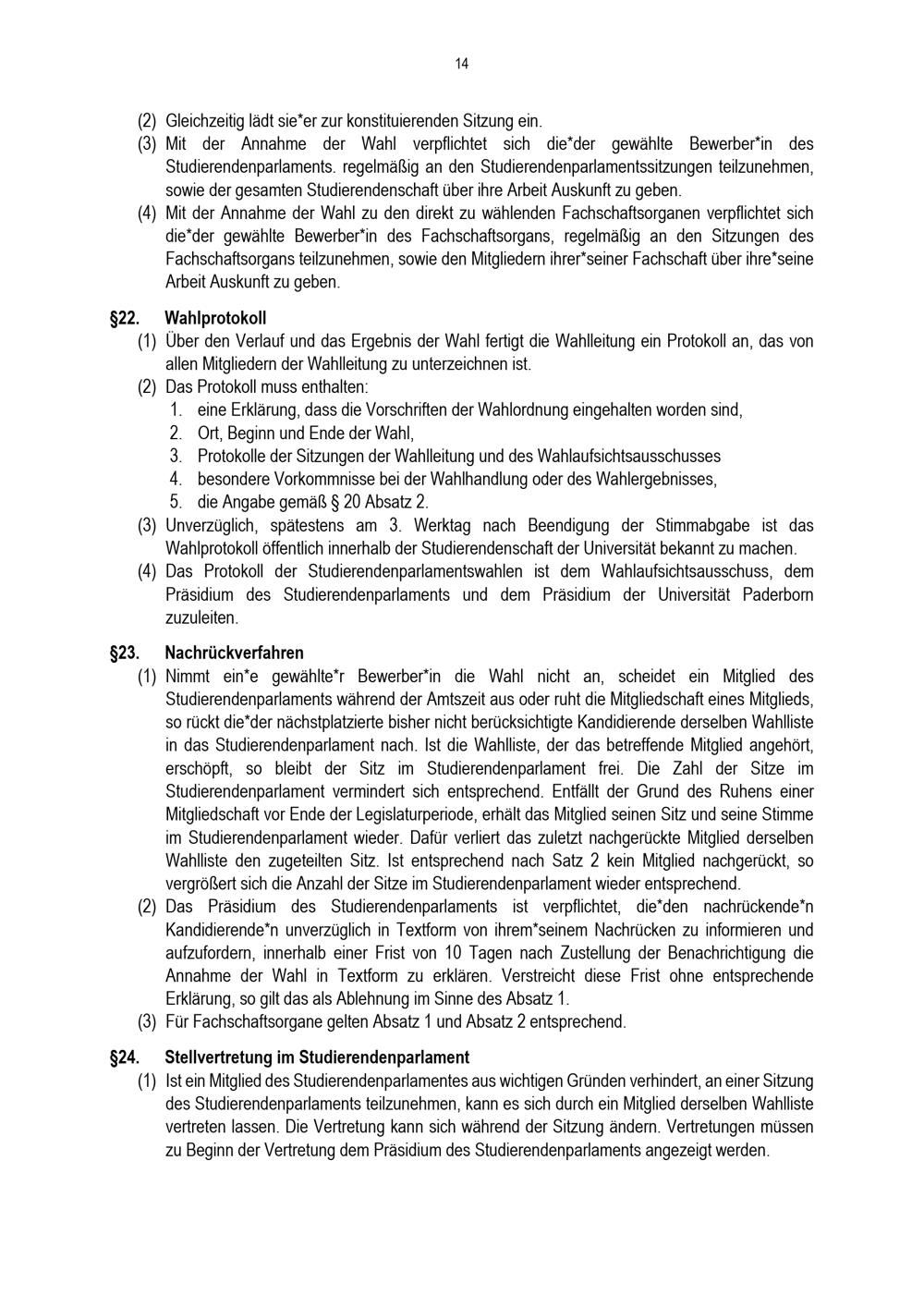 Wahlordnung für die Wahlen zum Studierendenparlament und zu den direkt zu wählenden Fachschaftsorganen der Studierendenschaft an der Universität Paderborn : vom 10. Mai 2022
