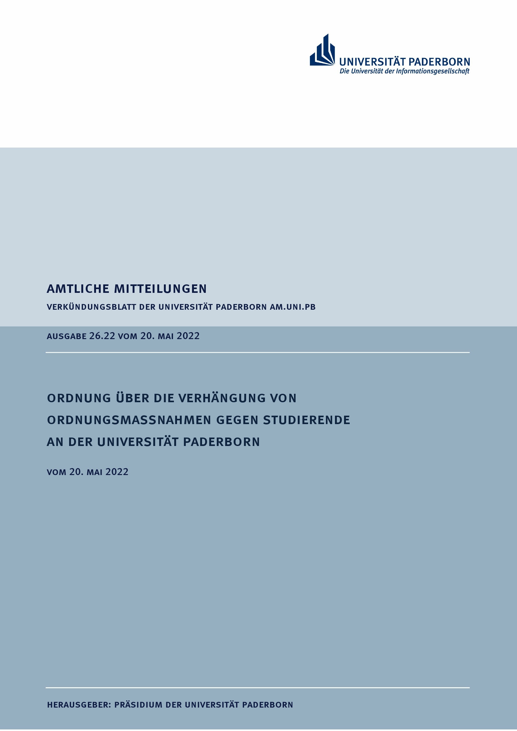 Ordnung über die Verhängung von Ordnungsmaßnahmen gegen Studierende an der Universität Paderborn : vom 20. Mai 2022