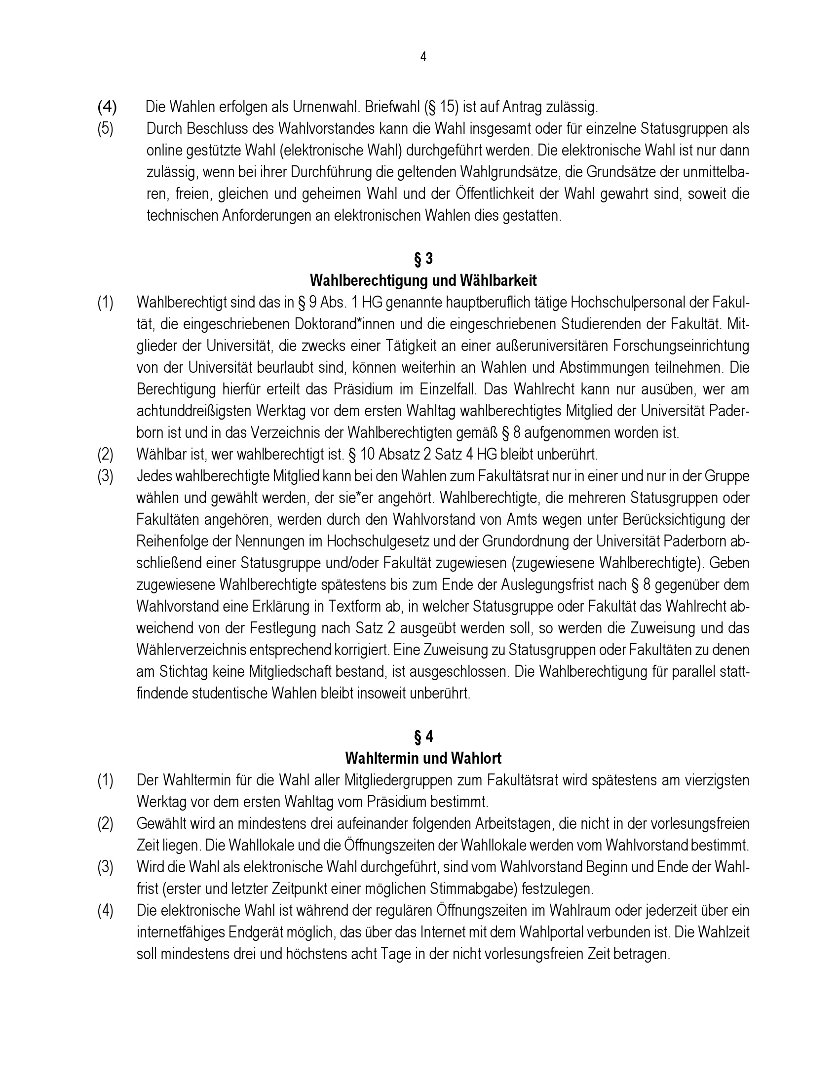 Wahlordnung für die Wahl zum Fakultätsrat und für die Wahl des Dekanats bzw. des*r Dekans*in und des*r Prodekans*in der Fakultät für Kulturwissenschaften an der Universität Paderborn : vom 25. Mai 2022