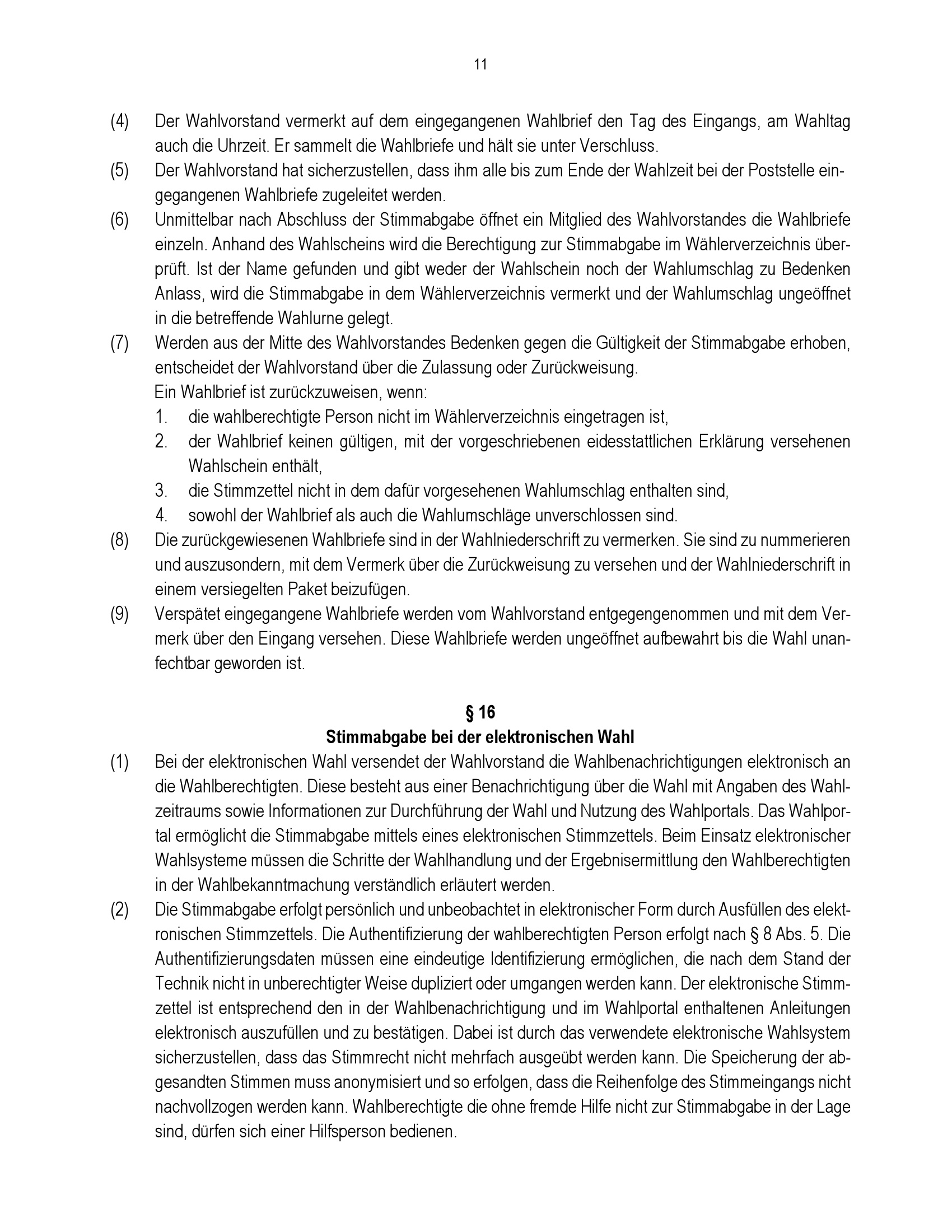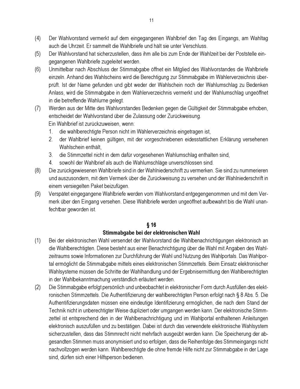 § 16 Stimmabgabe bei der elektronischen Wahl