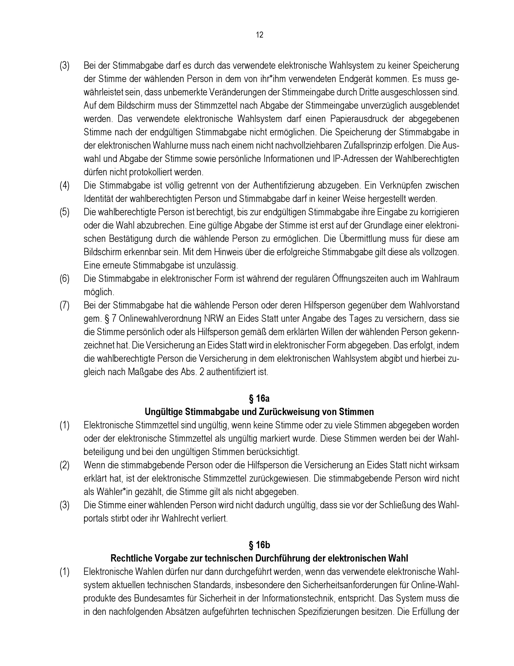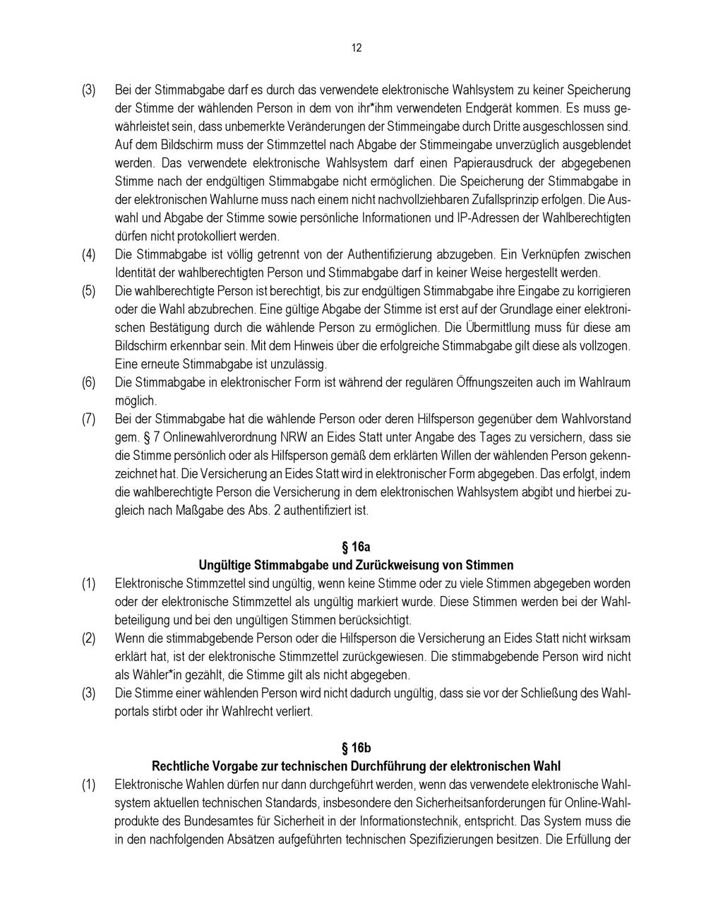 § 16a Ungültige Stimmabgabe und Zurückweisung von Stimmen