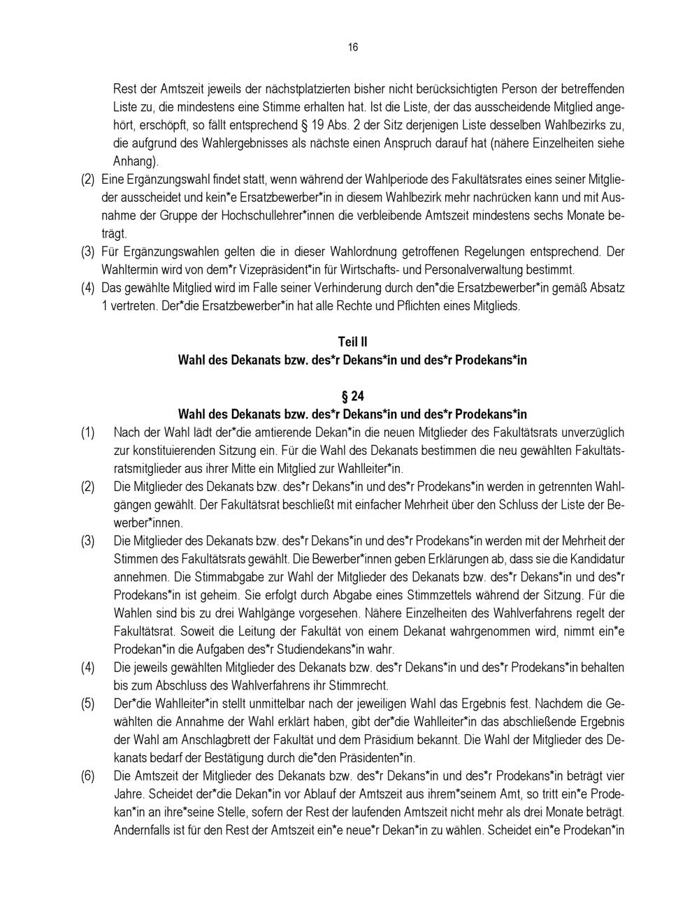 § 24 Wahl des Dekanats bzw. des*r Dekans*in und des*r Prodekans*in