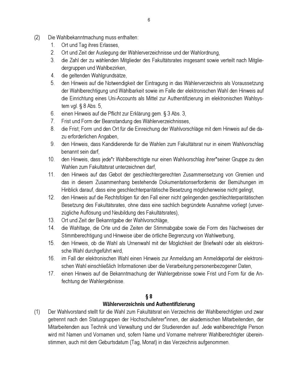 Wahlordnung für die Wahl zum Fakultätsrat und für die Wahl des Dekanats bzw. des*r[...]