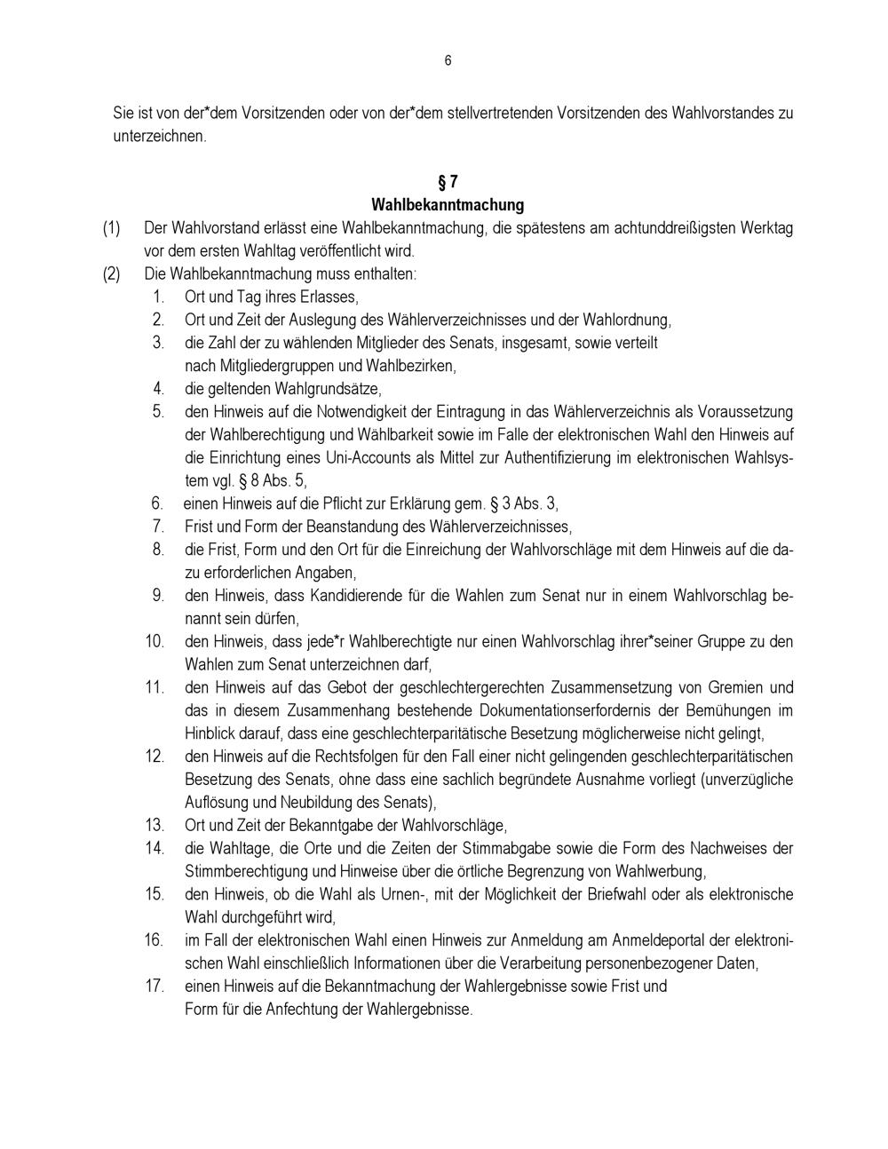 § 7 Wahlbekanntmachung