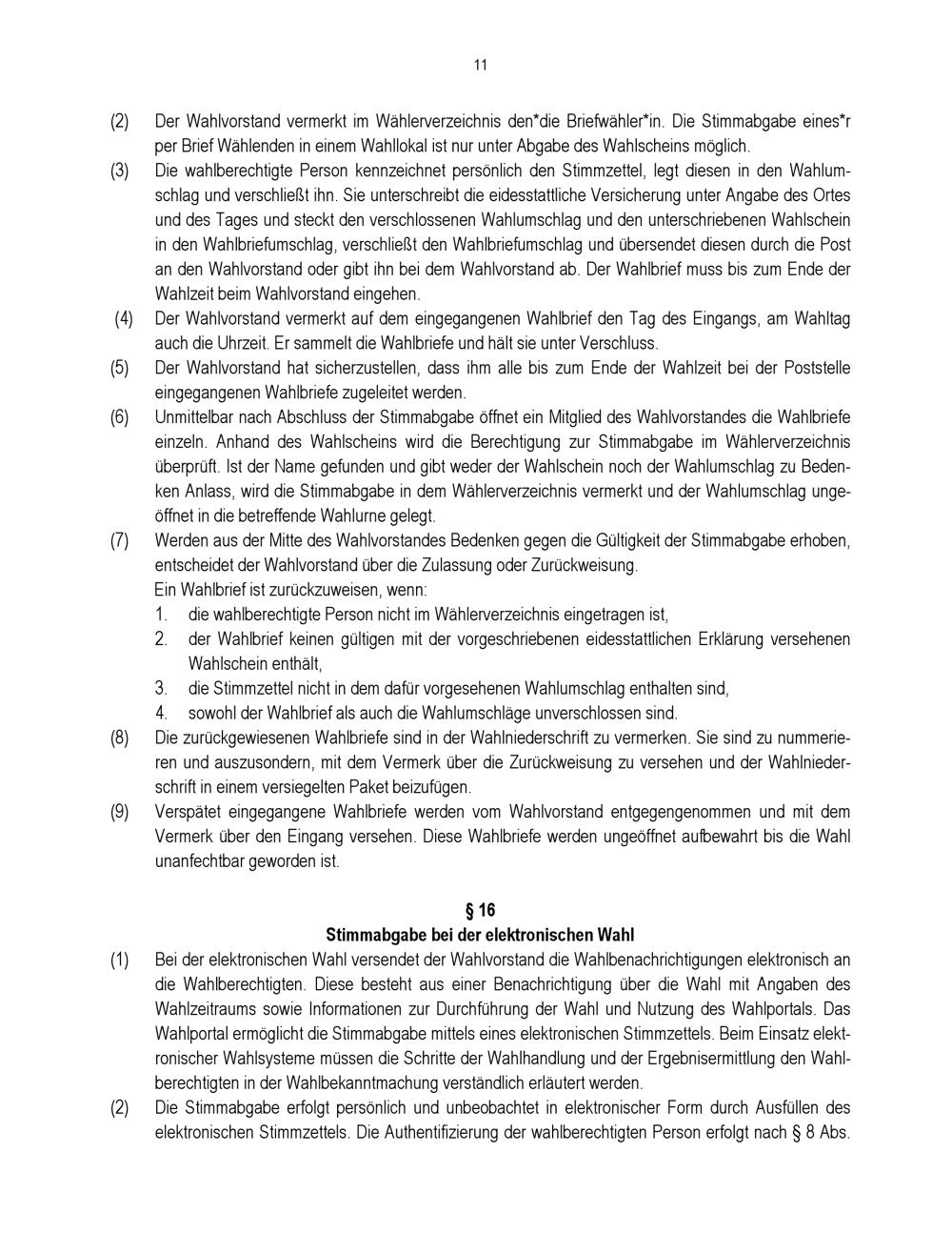 § 16 Stimmabgabe bei der elektronischen Wahl