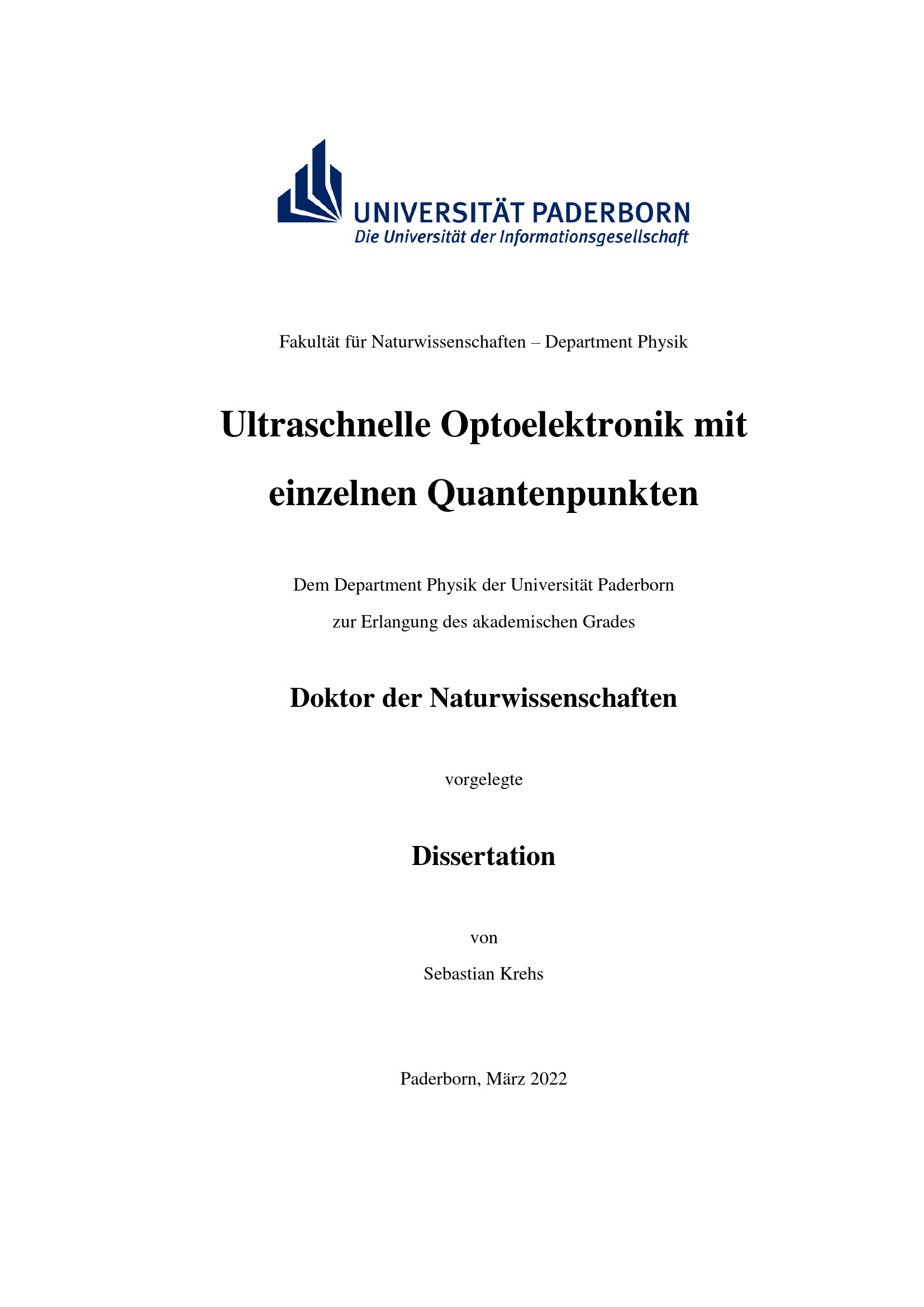 Ultraschnelle Optoelektronik mit einzelnen Quantenpunkten / von Sebastian Krehs