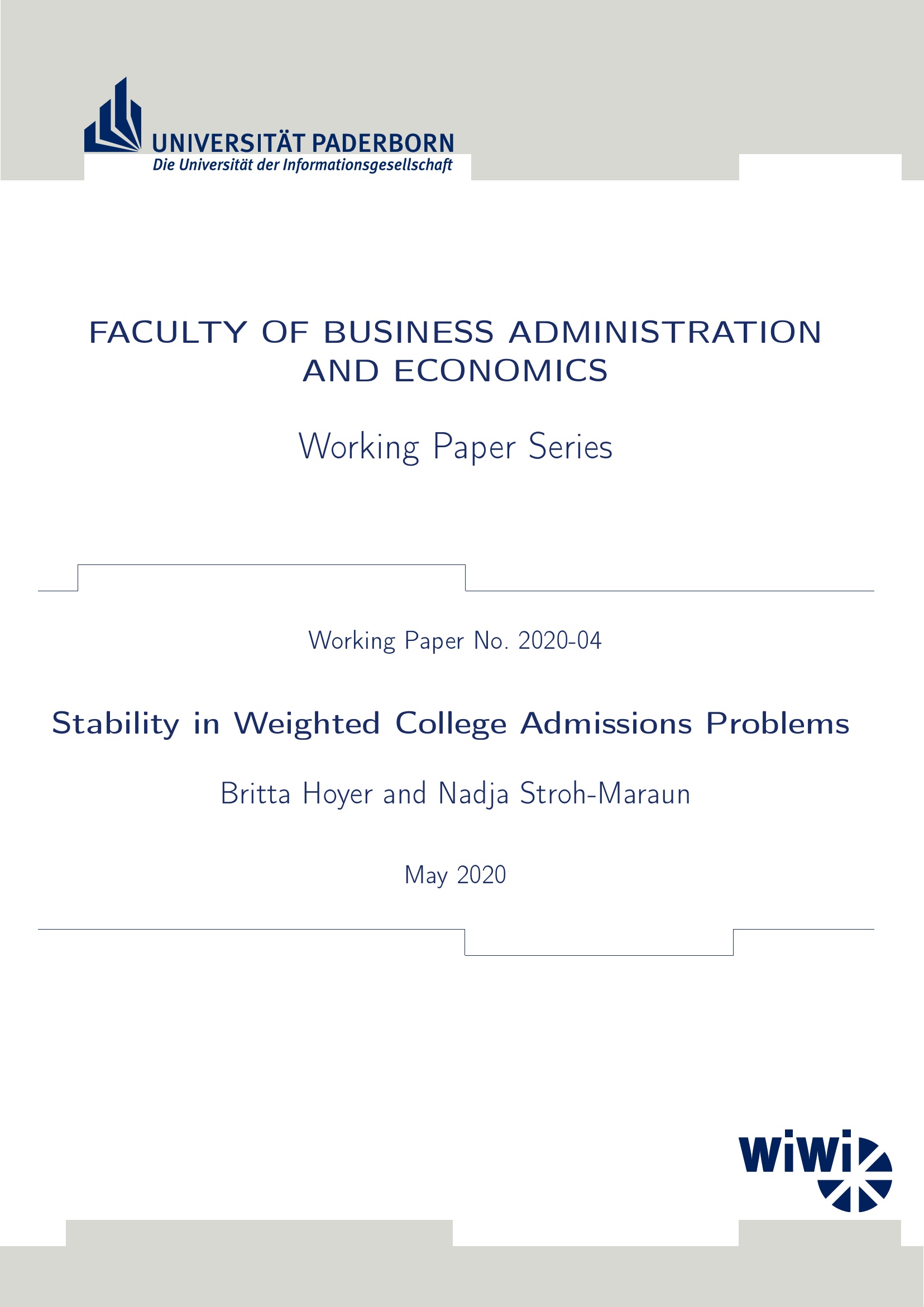 Stability in Weighted College Admissions Problems / Britta Hoyer and Nadja Stroh-Maraun