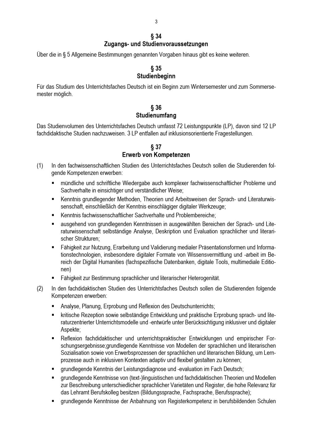 § 36 Studienumfang