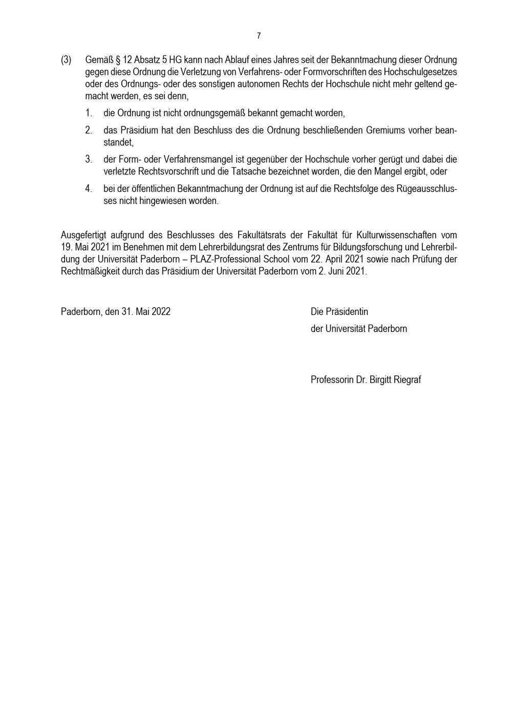 Besondere Bestimmungen der Prüfungsordnung für den Bachelorstudiengang Lehramt an Berufskollegs mit dem Unterrichtsfach Deutsch an der Universität Paderborn : vom 31. Mai 2022