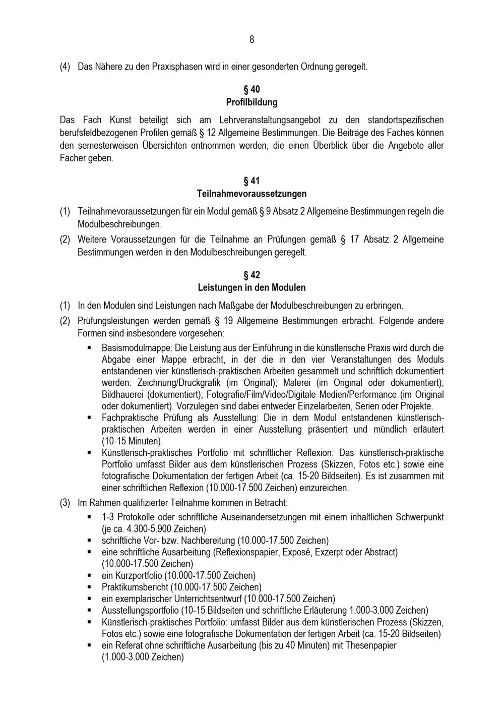 Besondere Bestimmungen der Prüfungsordnung für den Bachelorstudiengang Lehramt an Berufskollegs mit dem Unterrichtsfach Kunst an der Universität Paderborn : vom 31. Mai 2022