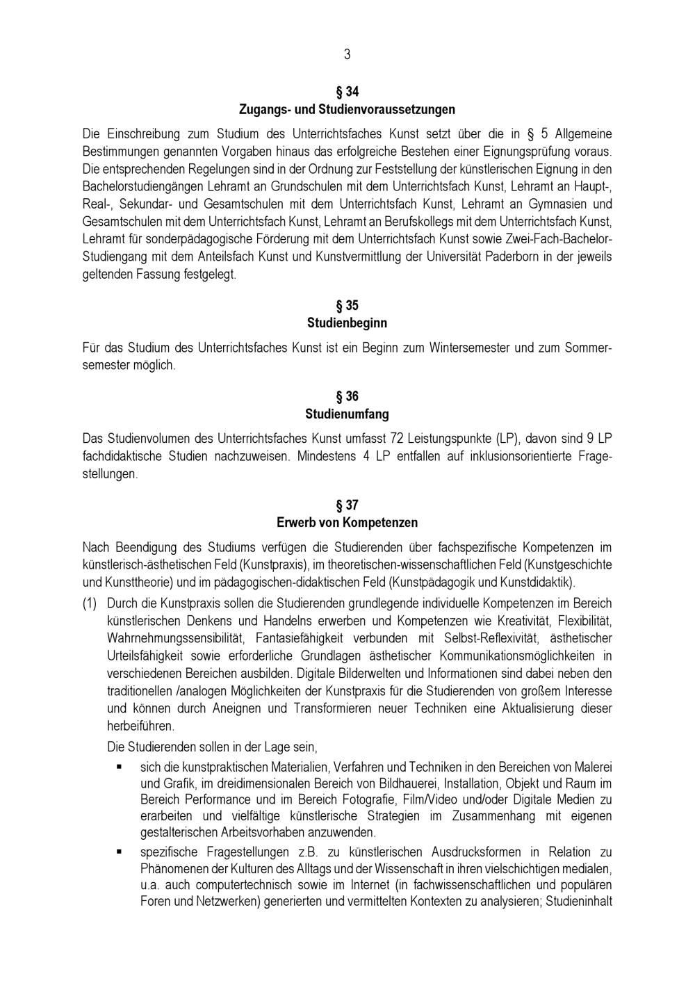 Besondere Bestimmungen der Prüfungsordnung für den Bachelorstudiengang Lehramt an Gymnasien und Gesamtschulen mit dem Unterrichtsfach Kunst an der Universität Paderborn : vom 31. Mai 2022