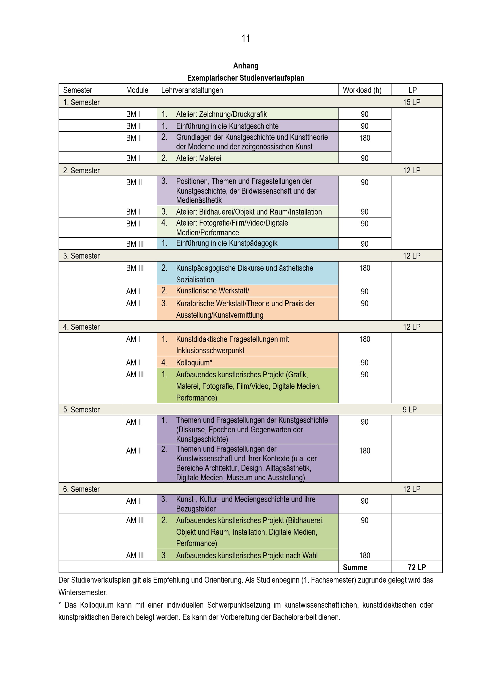 Exemplarischer Studienverlaufsplan