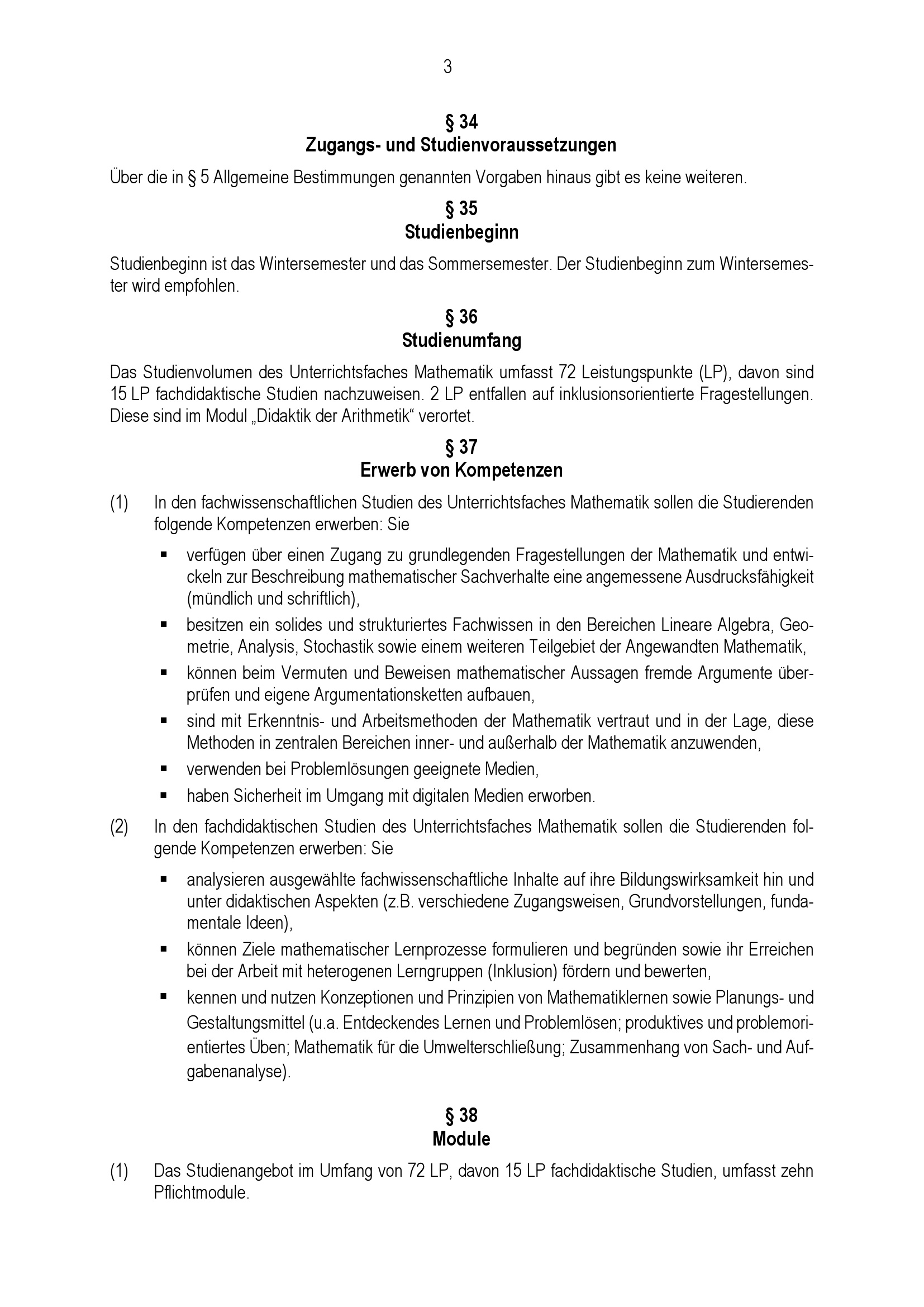 § 36 Studienumfang