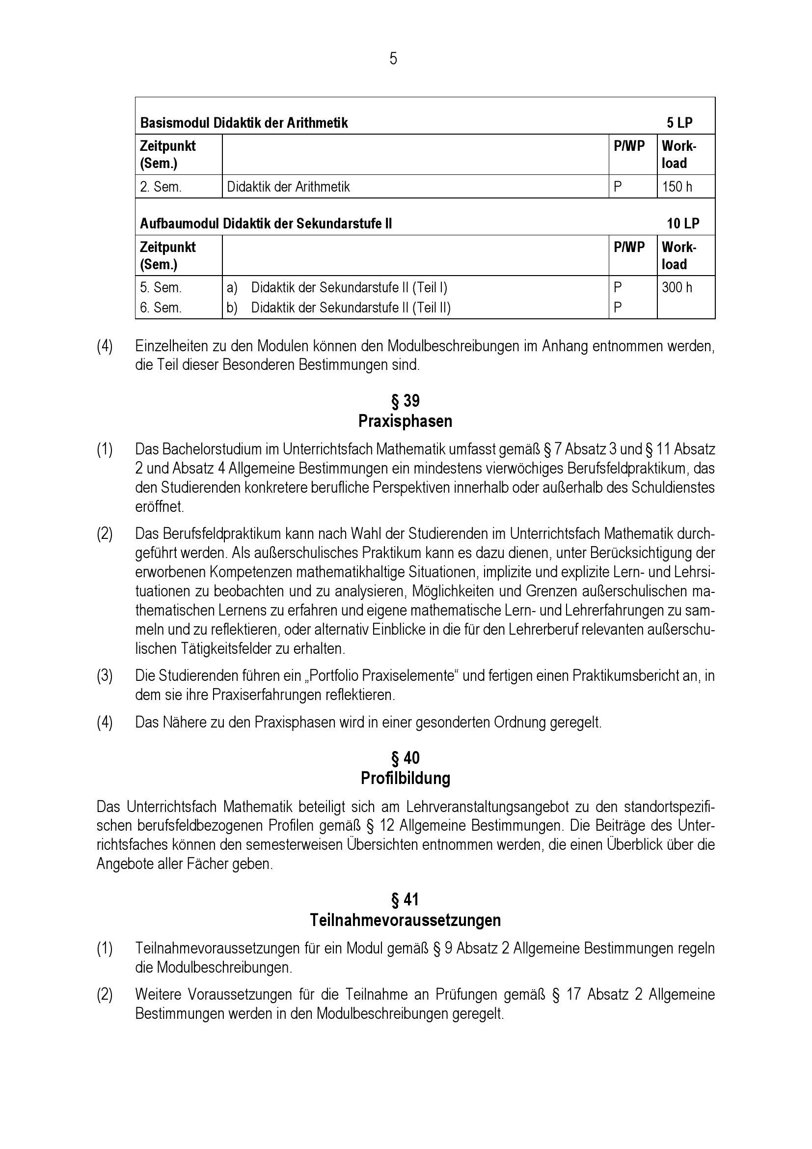 Besondere Bestimmungen der Prüfungsordnung für den Bachelorstudiengang Lehramt an Gymnasien und Gesamtschulen mit dem Unterrichtsfach Mathematik an der Universität Paderborn : vom 31. Mai 2022