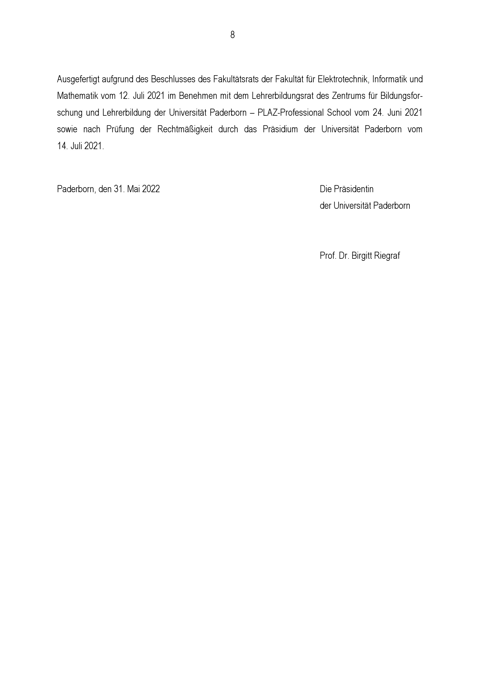 Besondere Bestimmungen der Prüfungsordnung für den Bachelorstudiengang Lehramt an Gymnasien und Gesamtschulen mit dem Unterrichtsfach Mathematik an der Universität Paderborn : vom 31. Mai 2022