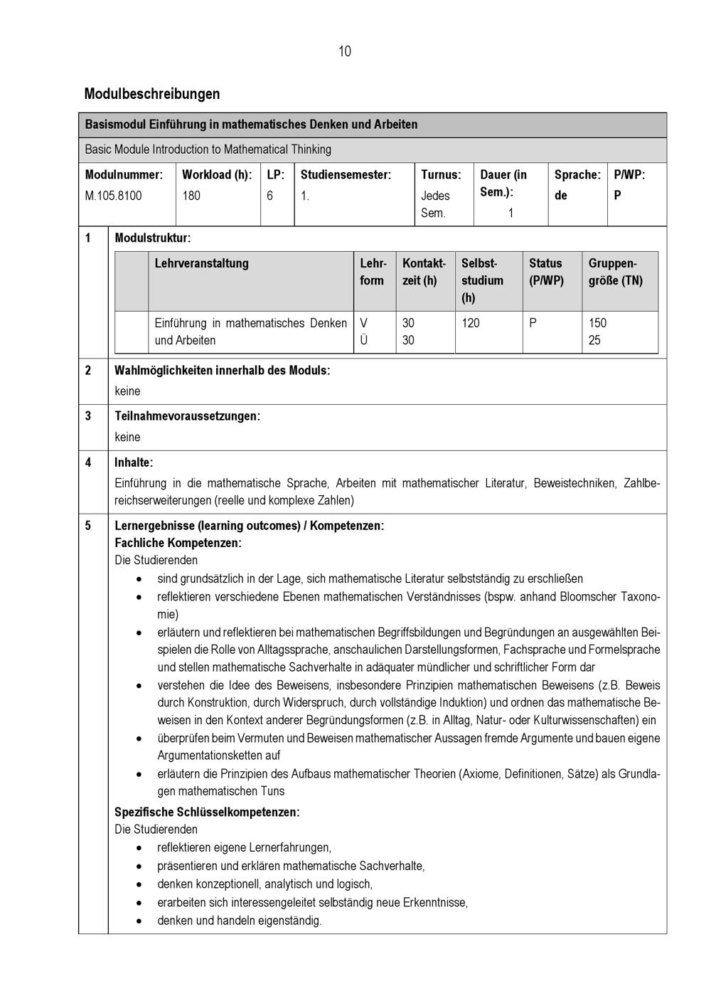 Besondere Bestimmungen der Prüfungsordnung für den Bachelorstudiengang Lehramt an Gymnasien und Gesamtschulen mit dem Unterrichtsfach Mathematik an der Universität Paderborn : vom 31. Mai 2022
