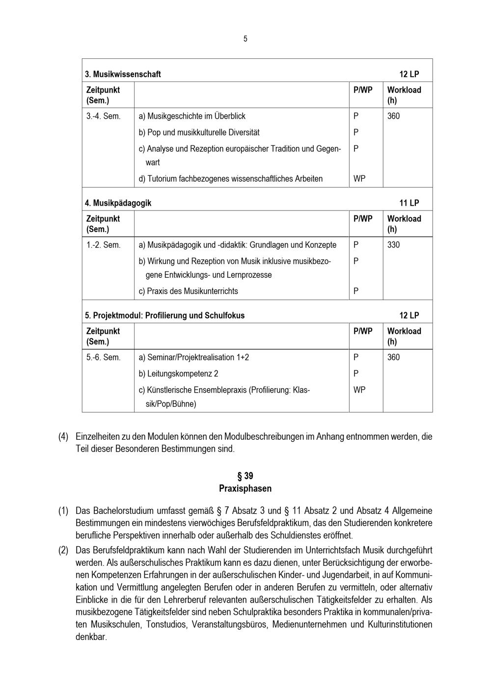 Besondere Bestimmungen der Prüfungsordnung für den Bachelorstudiengang Lehramt an Haupt-, Real-, Sekundar- und Gesamtschulen mit dem Unterrichtsfach Musik an der Universität Paderborn : vom 31. Mai 2022