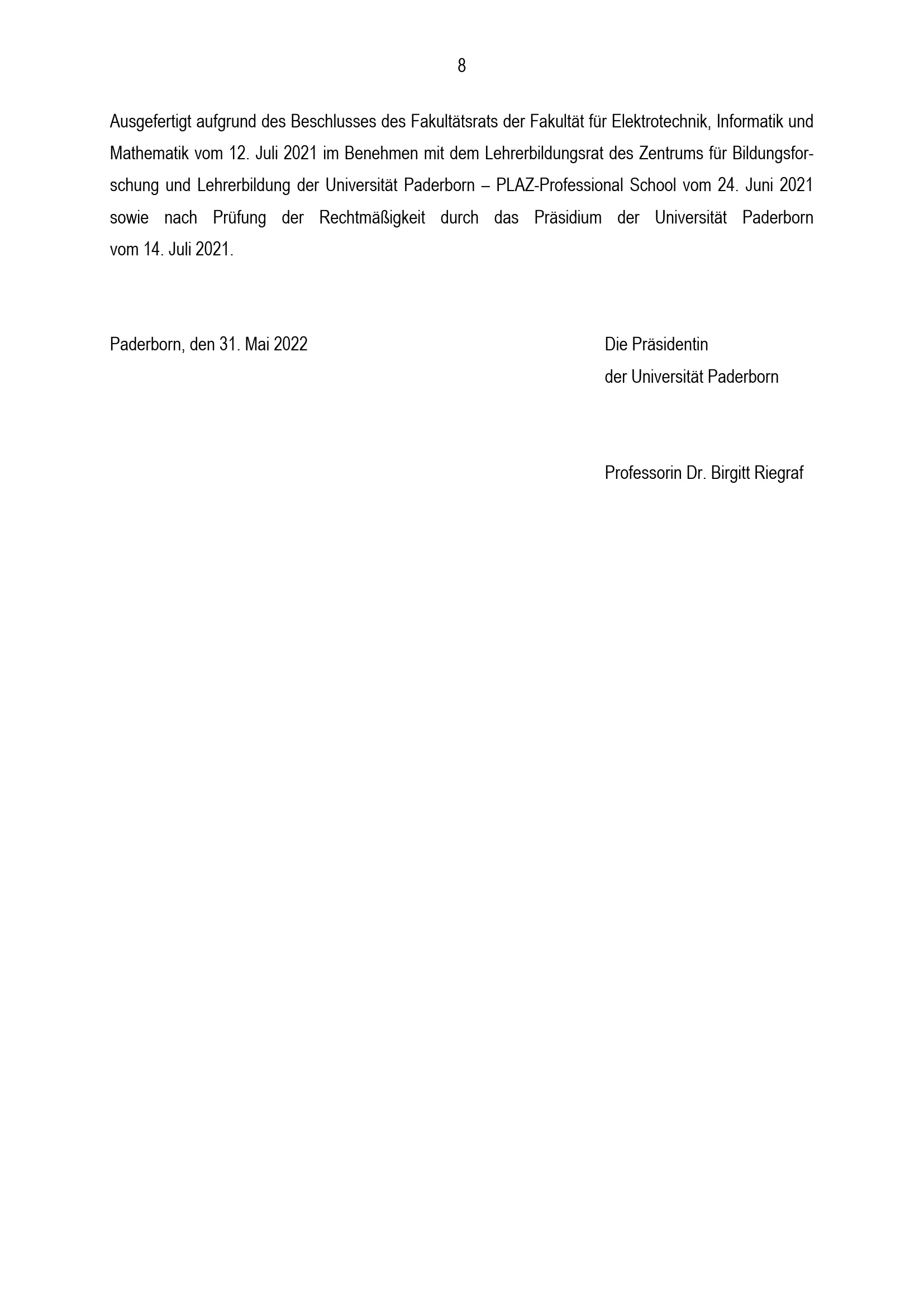 Besondere Bestimmungen der Prüfungsordnung für den Bachelorstudiengang Lehramt für sonderpädagogische Förderung mit dem Lernbereich Mathematische Grundbildung an der Universität Paderborn : vom 31. Mai 2022