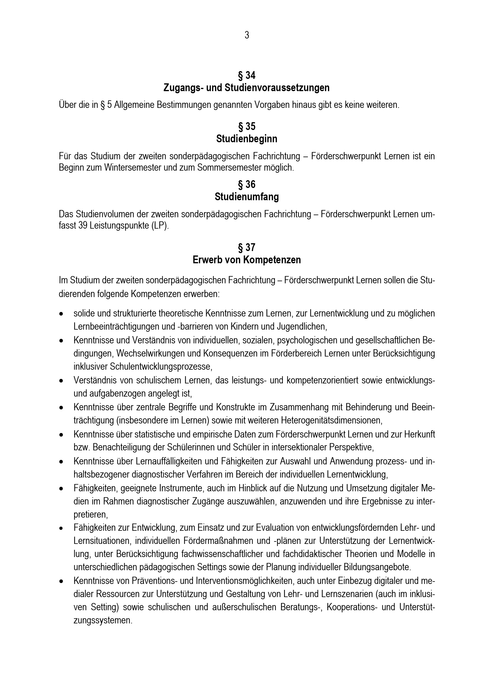 Besondere Bestimmungen der Prüfungsordnung für den Bachelorstudiengang Lehramt für sonderpädagogische Förderung mit der zweiten sonderpädagogischen Fachrichtung - Förderschwerpunkt Lernen an der Universität Paderborn : vom 31. Mai 2022