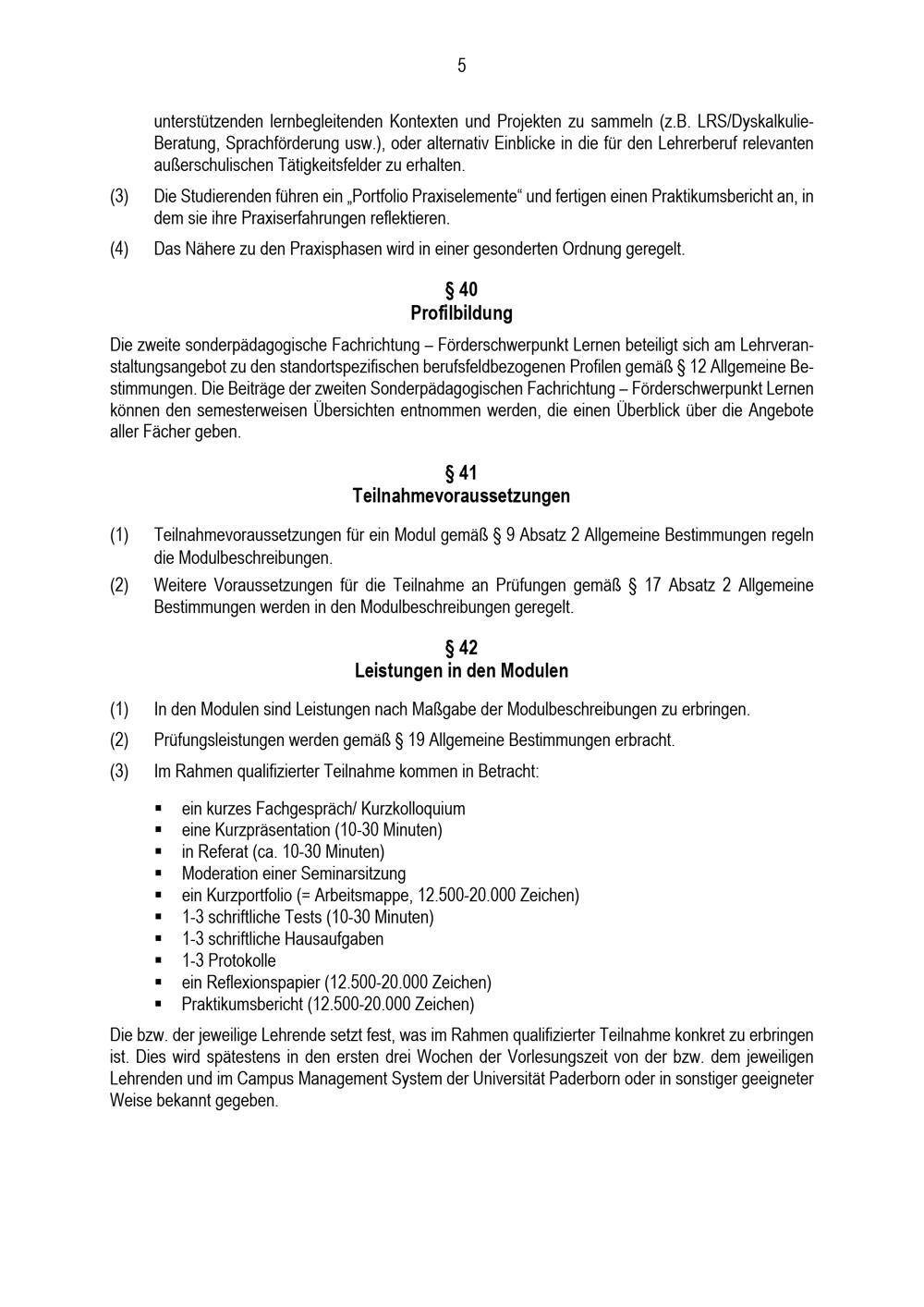 Besondere Bestimmungen der Prüfungsordnung für den Bachelorstudiengang Lehramt für sonderpädagogische Förderung mit der zweiten sonderpädagogischen Fachrichtung - Förderschwerpunkt Lernen an der Universität Paderborn : vom 31. Mai 2022