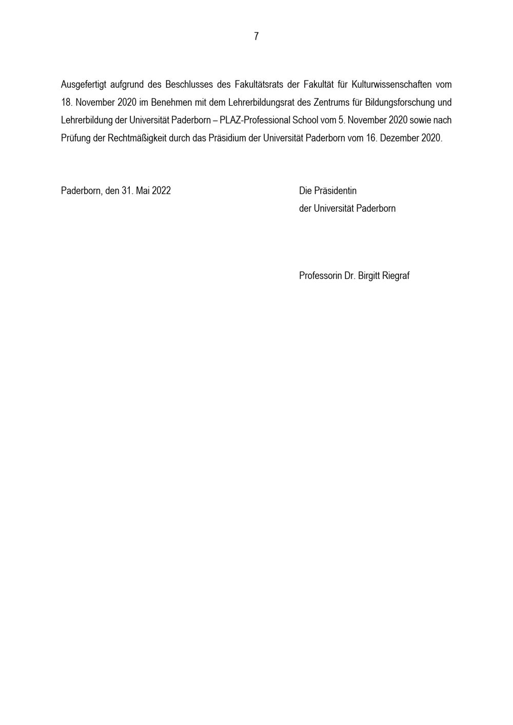 Besondere Bestimmungen der Prüfungsordnung für den Bachelorstudiengang Lehramt für sonderpädagogische Förderung mit der zweiten sonderpädagogischen Fachrichtung - Förderschwerpunkt Lernen an der Universität Paderborn : vom 31. Mai 2022