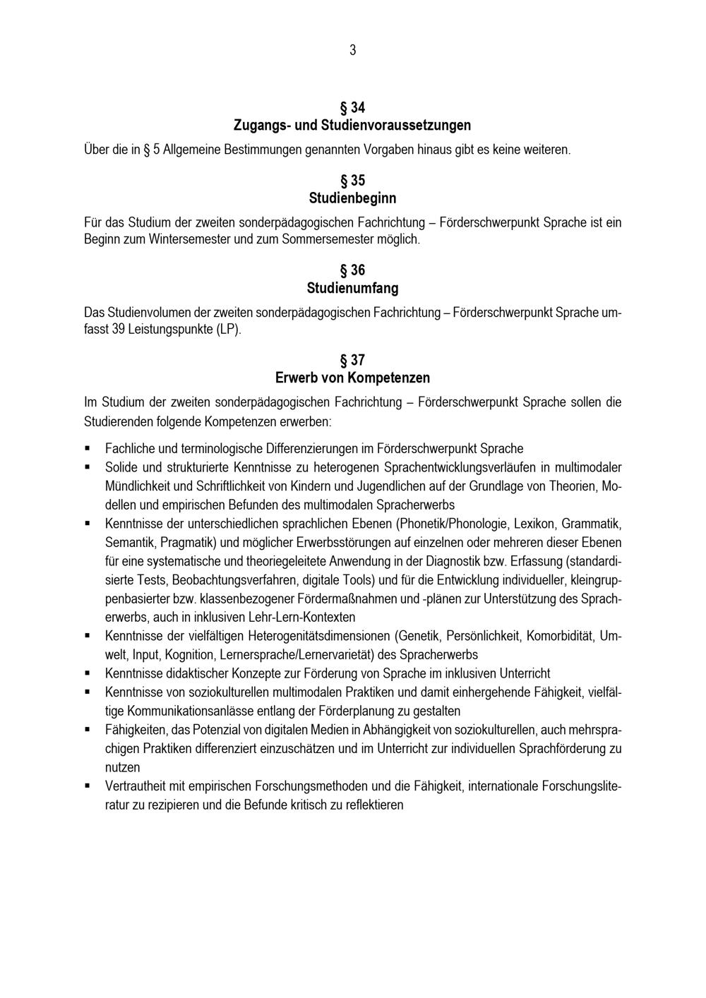 Besondere Bestimmungen der Prüfungsordnung für den Bachelorstudiengang Lehramt für sonderpädagogische Förderung mit der zweiten sonderpädagogischen Fachrichtung Förderschwerpunkt Sprache an der Universität Paderborn : vom 31. Mai 2022