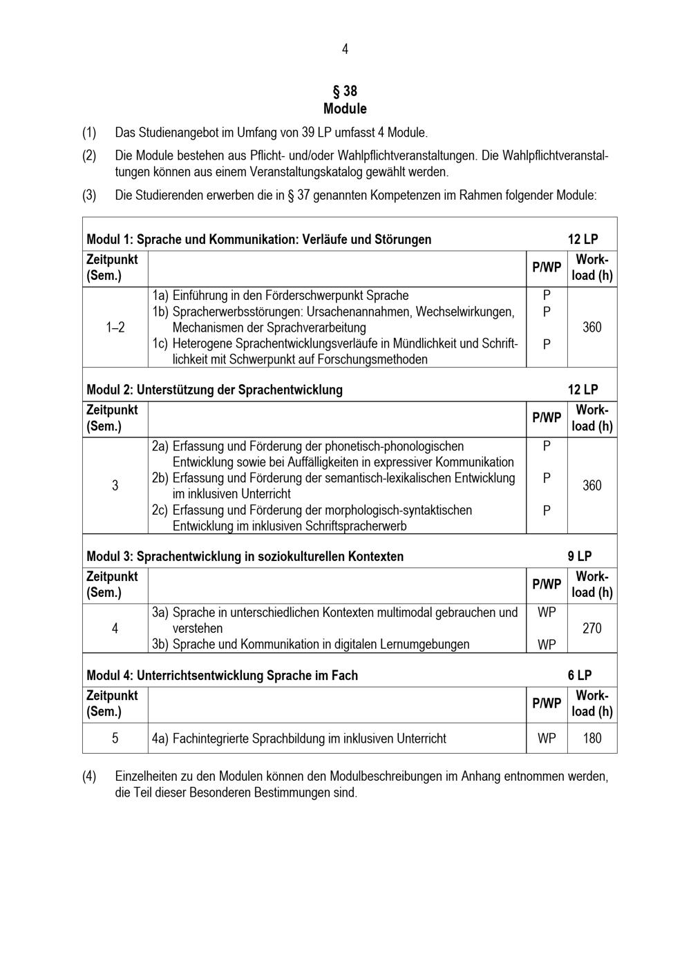Besondere Bestimmungen der Prüfungsordnung für den Bachelorstudiengang Lehramt für sonderpädagogische Förderung mit der zweiten sonderpädagogischen Fachrichtung Förderschwerpunkt Sprache an der Universität Paderborn : vom 31. Mai 2022