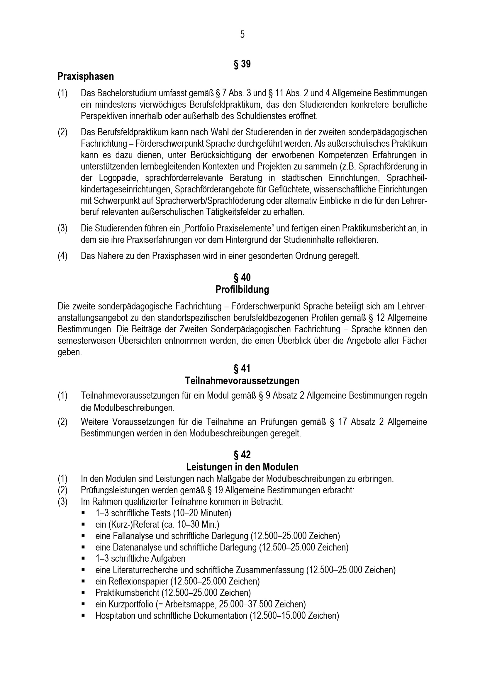 Besondere Bestimmungen der Prüfungsordnung für den Bachelorstudiengang Lehramt für sonderpädagogische Förderung mit der zweiten sonderpädagogischen Fachrichtung Förderschwerpunkt Sprache an der Universität Paderborn : vom 31. Mai 2022