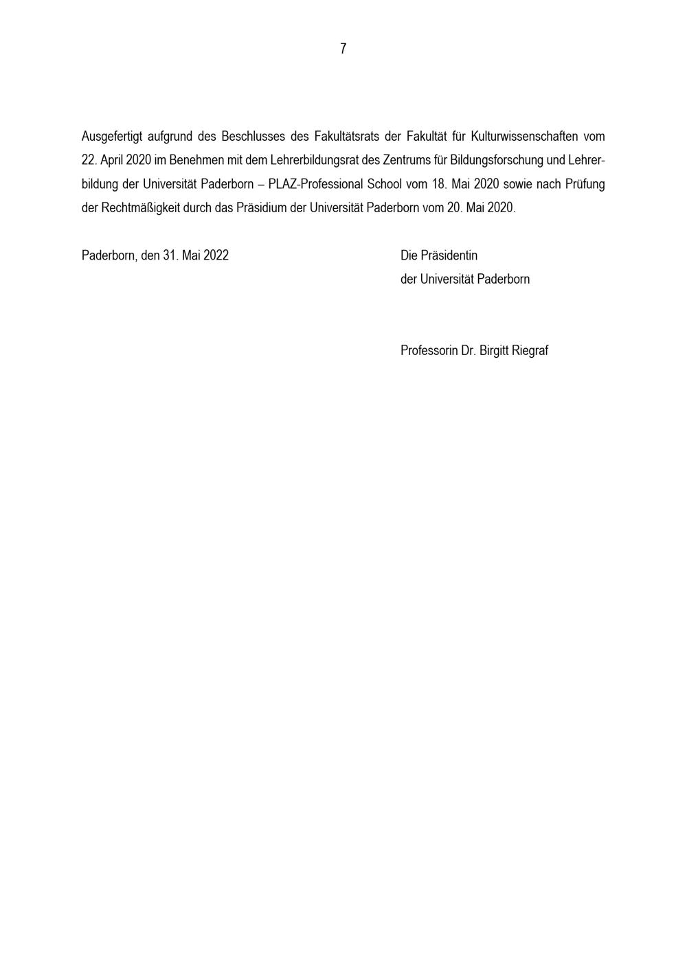 Besondere Bestimmungen der Prüfungsordnung für den Bachelorstudiengang Lehramt für sonderpädagogische Förderung mit der zweiten sonderpädagogischen Fachrichtung Förderschwerpunkt Sprache an der Universität Paderborn : vom 31. Mai 2022