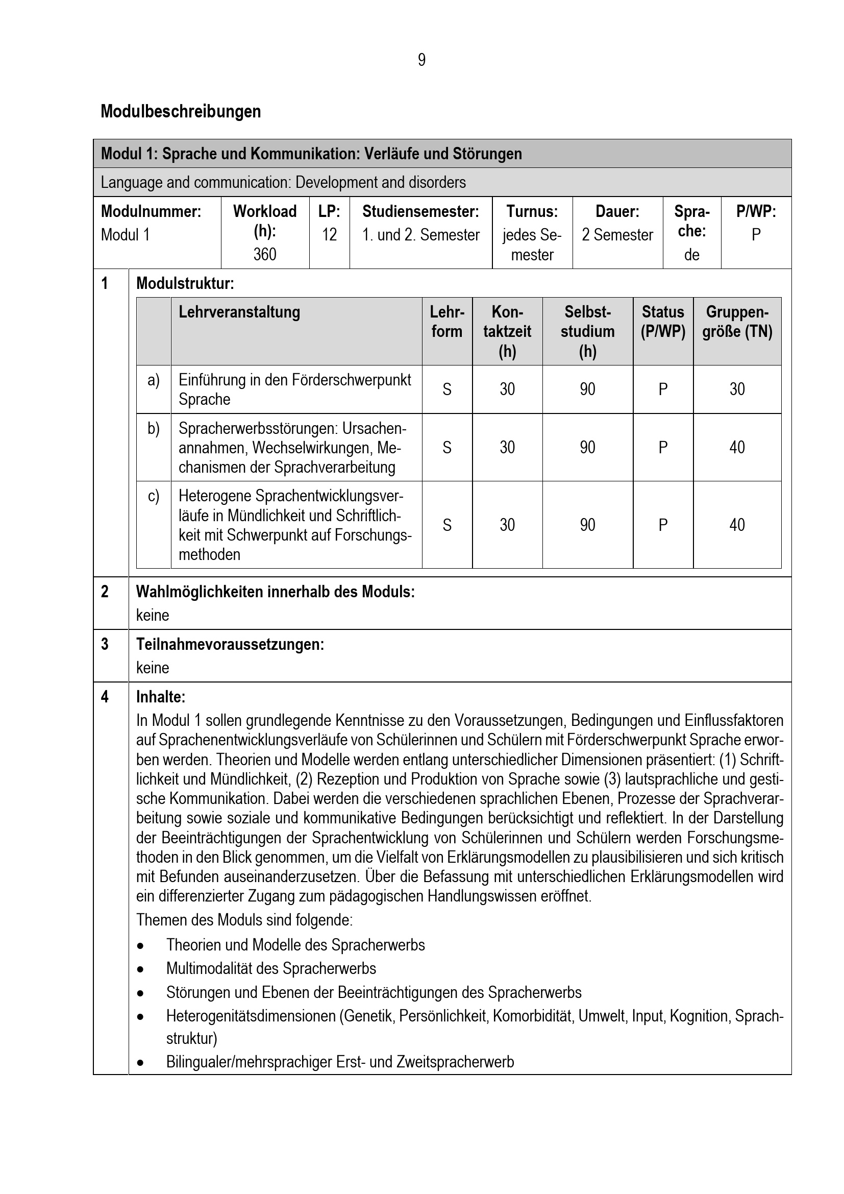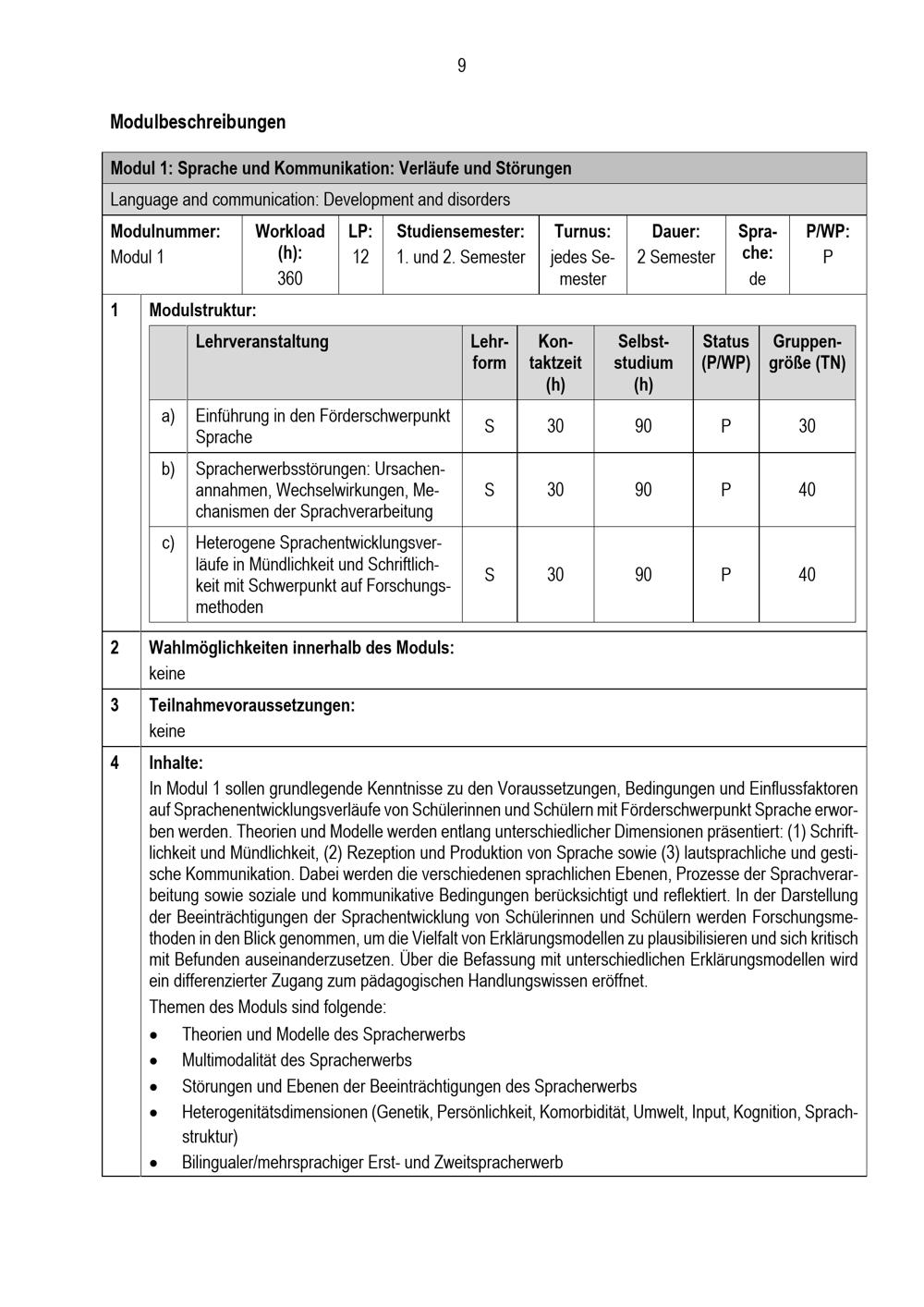 Besondere Bestimmungen der Prüfungsordnung für den Bachelorstudiengang Lehramt für sonderpädagogische Förderung mit der zweiten sonderpädagogischen Fachrichtung Förderschwerpunkt Sprache an der Universität Paderborn : vom 31. Mai 2022