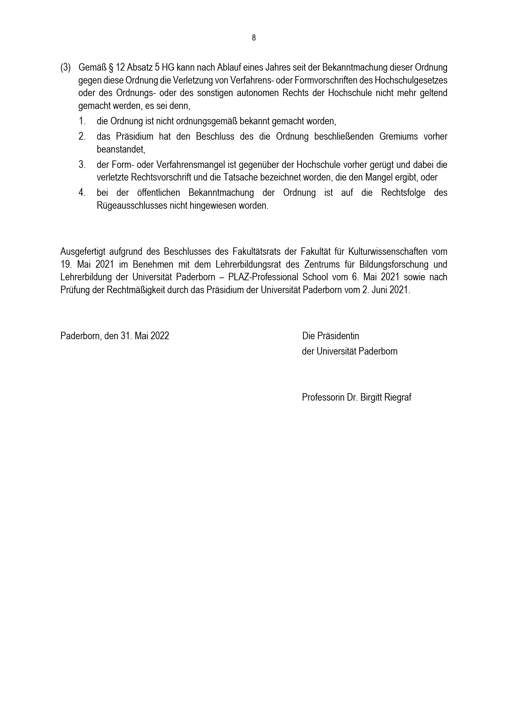 Besondere Bestimmungen der Prüfungsordnung für den Bachelorstudiengang Lehramt für sonderpädagogische Förderung mit dem Unterrichtsfach Evangelische Religionslehre an der Universität Paderborn : vom 31. Mai 2022
