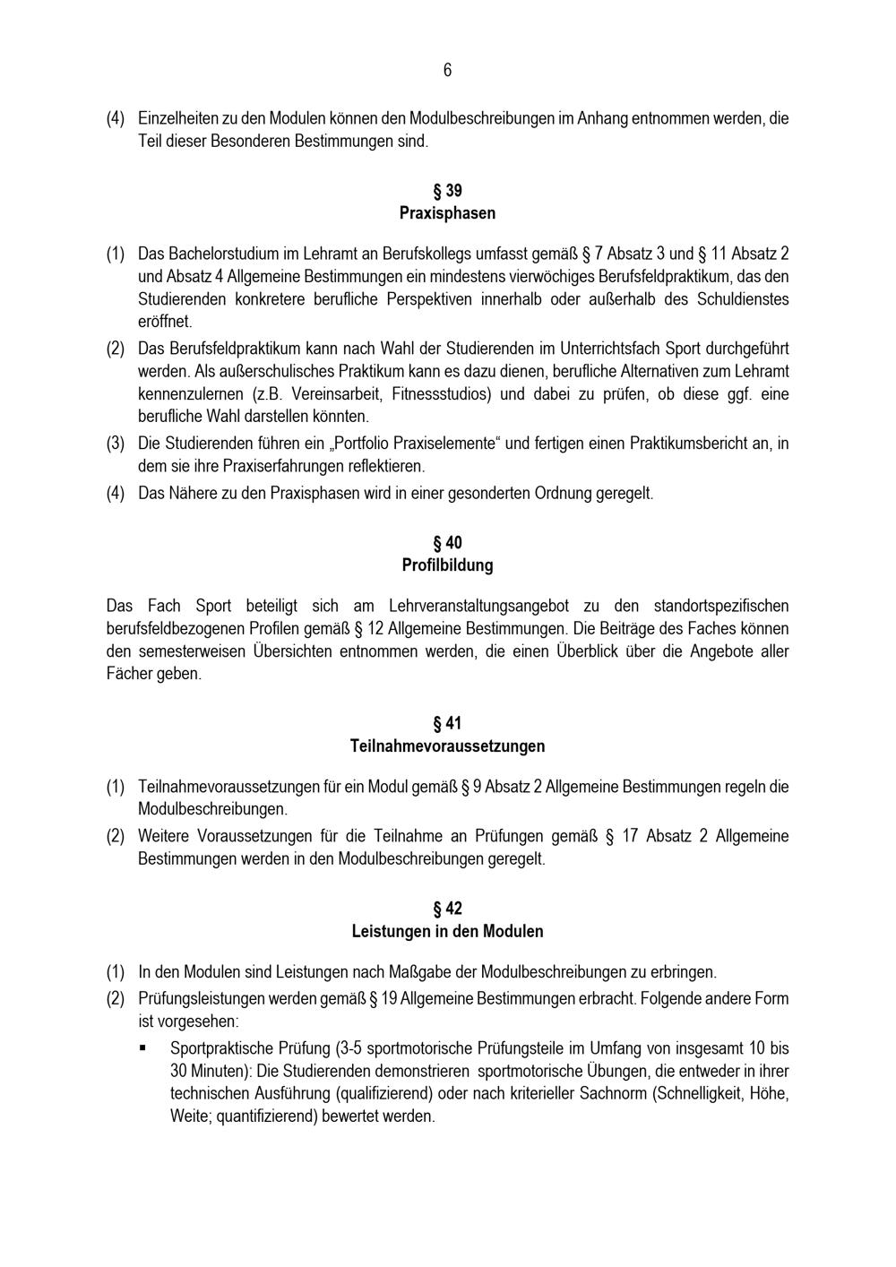 Besondere Bestimmungen der Prüfungsordnung für den Bachelorstudiengang Lehramt an Berufskollegs mit dem Unterrichtsfach Sport an der Universität Paderborn : vom 31. Mai 2022
