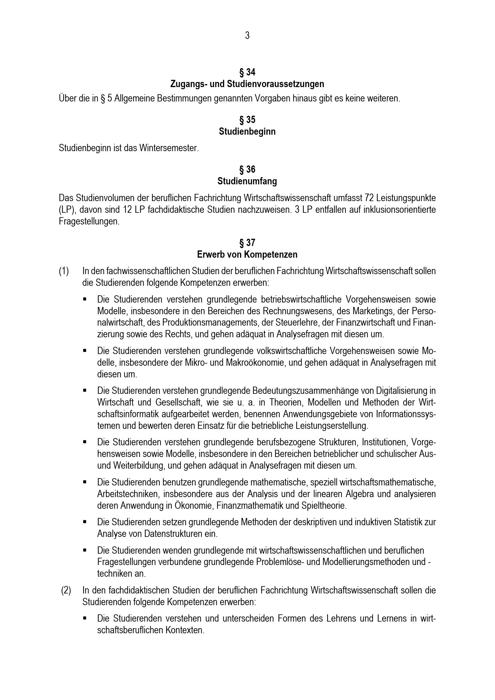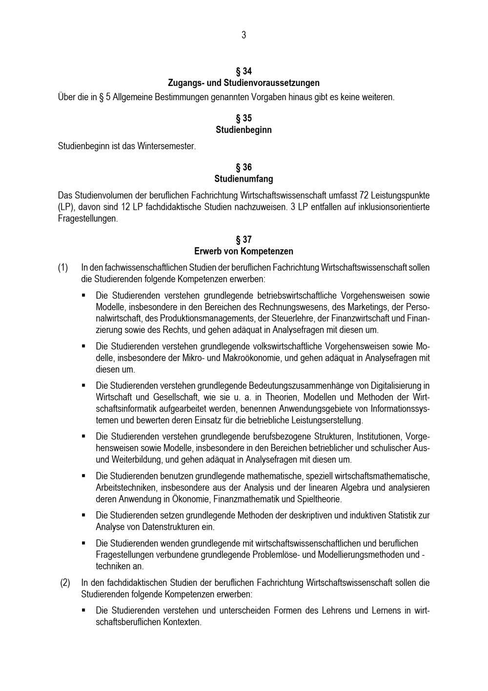 Besondere Bestimmungen der Prüfungsordnung für den Bachelorstudiengang Lehramt an Berufskollegs mit der beruflichen Fachrichtung Wirtschaftswissenschaft an der Universität Paderborn : vom 31. Mai 2022