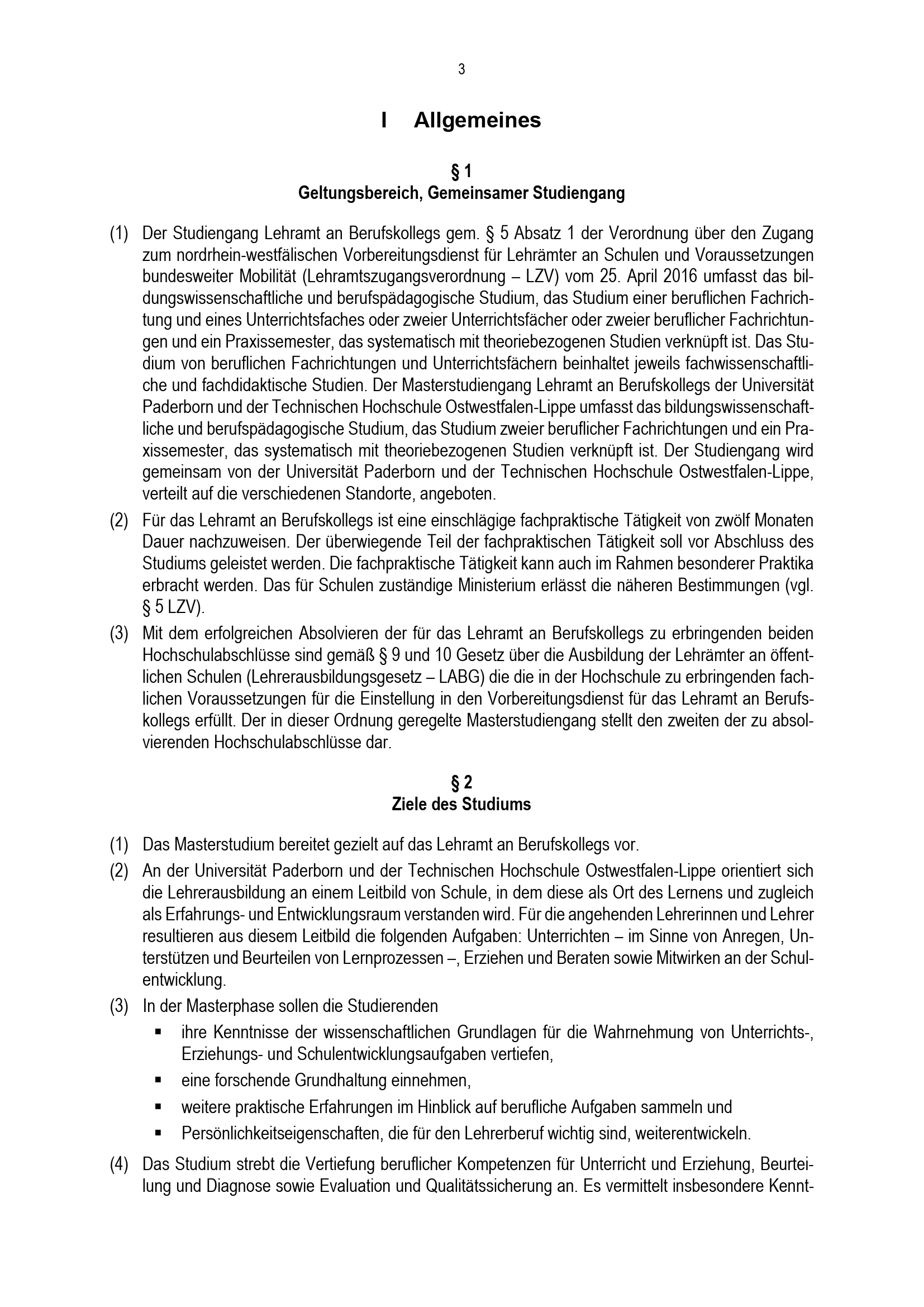 Allgemeine Bestimmungen der Prüfungsordnung für den Masterstudiengang Lehramt an Berufskollegs mit zwei beruflichen Fachrichtungen an der Universität Paderborn und der Technischen Hochschule Ostwestfalen-Lippe : vom 31. Mai 2022