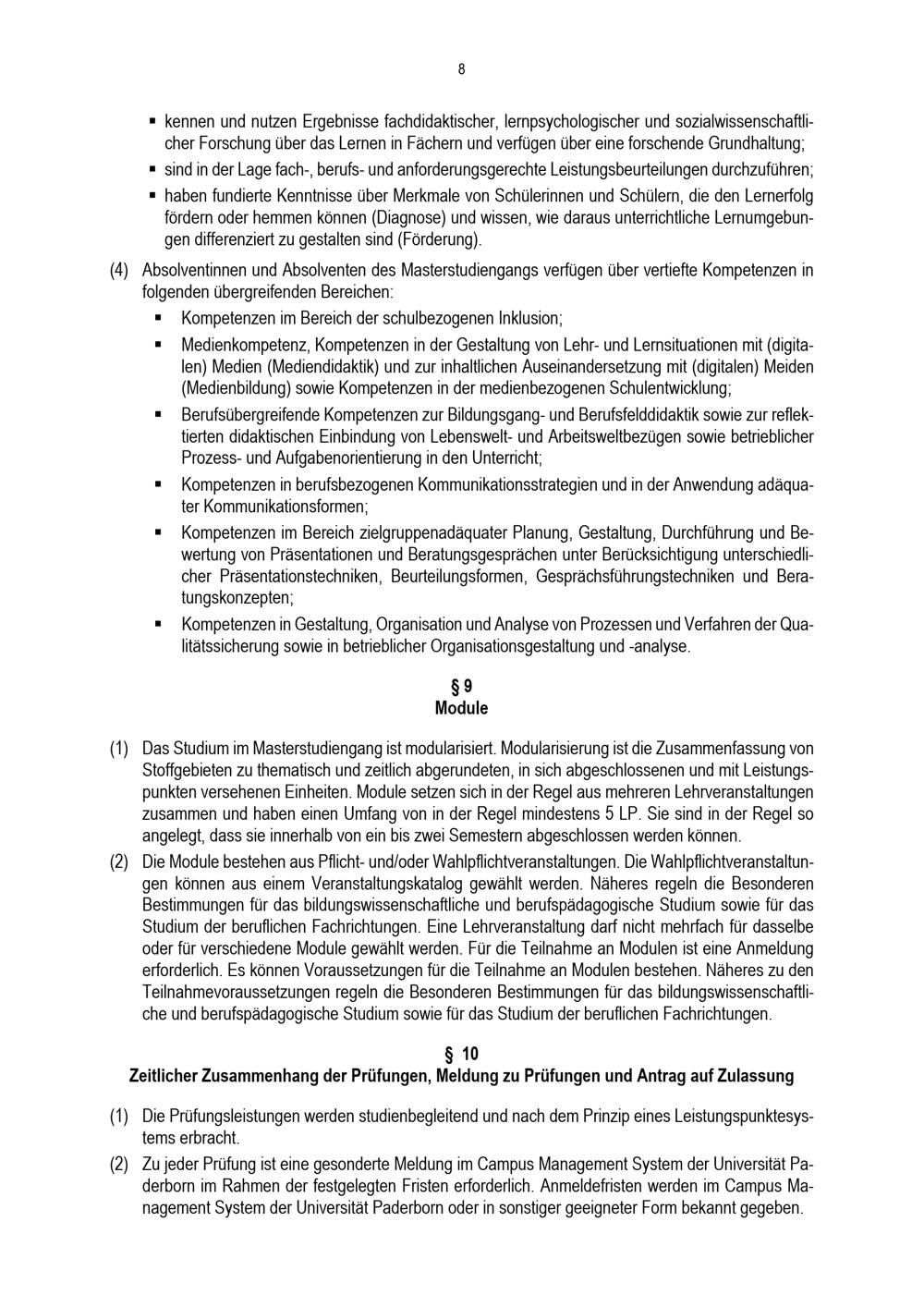 Allgemeine Bestimmungen der Prüfungsordnung für den Masterstudiengang Lehramt an Berufskollegs mit zwei beruflichen Fachrichtungen an der Universität Paderborn und der Technischen Hochschule Ostwestfalen-Lippe : vom 31. Mai 2022