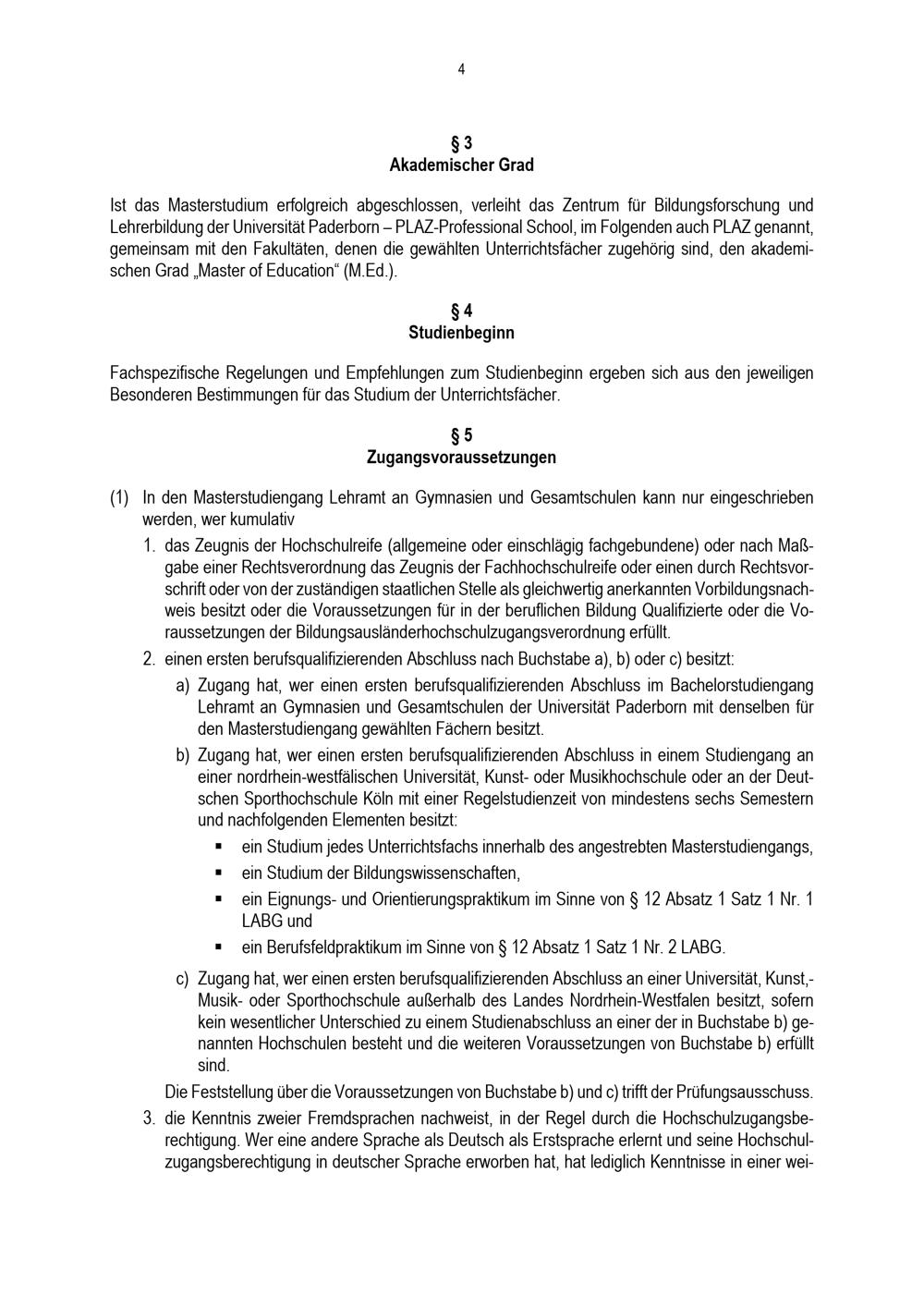 Allgemeine Bestimmungen der Prüfungsordnung für den Masterstudiengang Lehramt an Gymnasien und Gesamtschulen an der Universität Paderborn : vom 31. Mai 2022