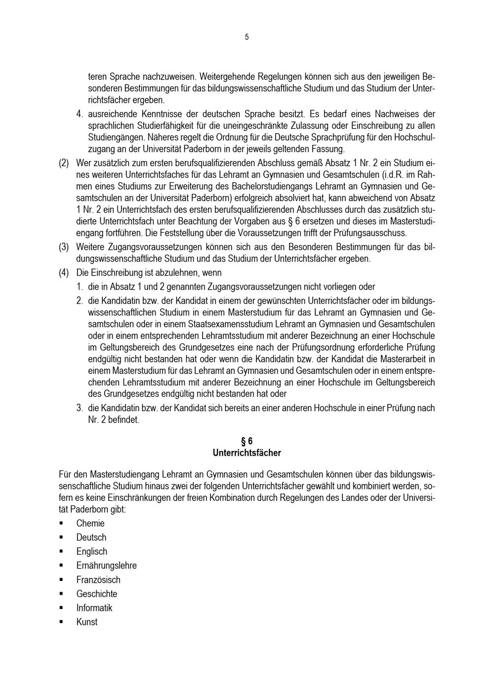 Allgemeine Bestimmungen der Prüfungsordnung für den Masterstudiengang Lehramt an Gymnasien und Gesamtschulen an der Universität Paderborn : vom 31. Mai 2022