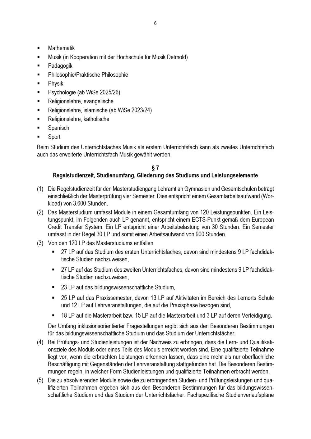 Allgemeine Bestimmungen der Prüfungsordnung für den Masterstudiengang Lehramt an Gymnasien und Gesamtschulen an der Universität Paderborn : vom 31. Mai 2022