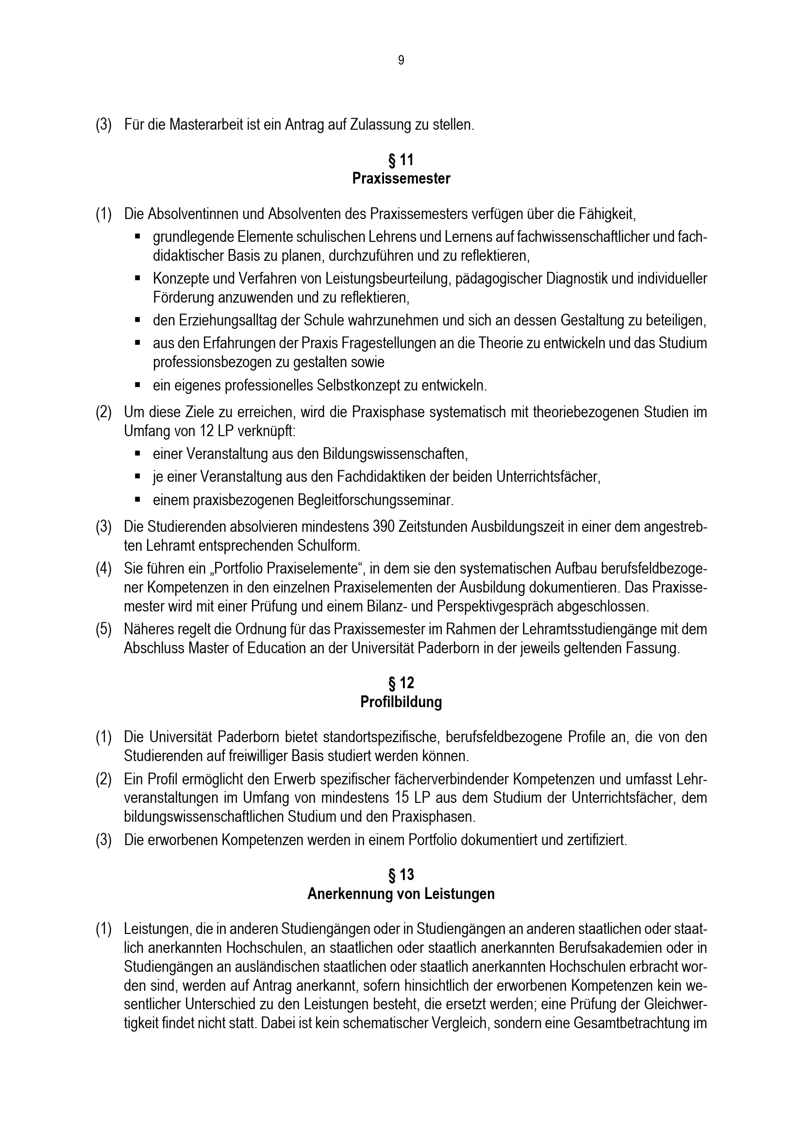 Allgemeine Bestimmungen der Prüfungsordnung für den Masterstudiengang Lehramt an Gymnasien und Gesamtschulen an der Universität Paderborn : vom 31. Mai 2022