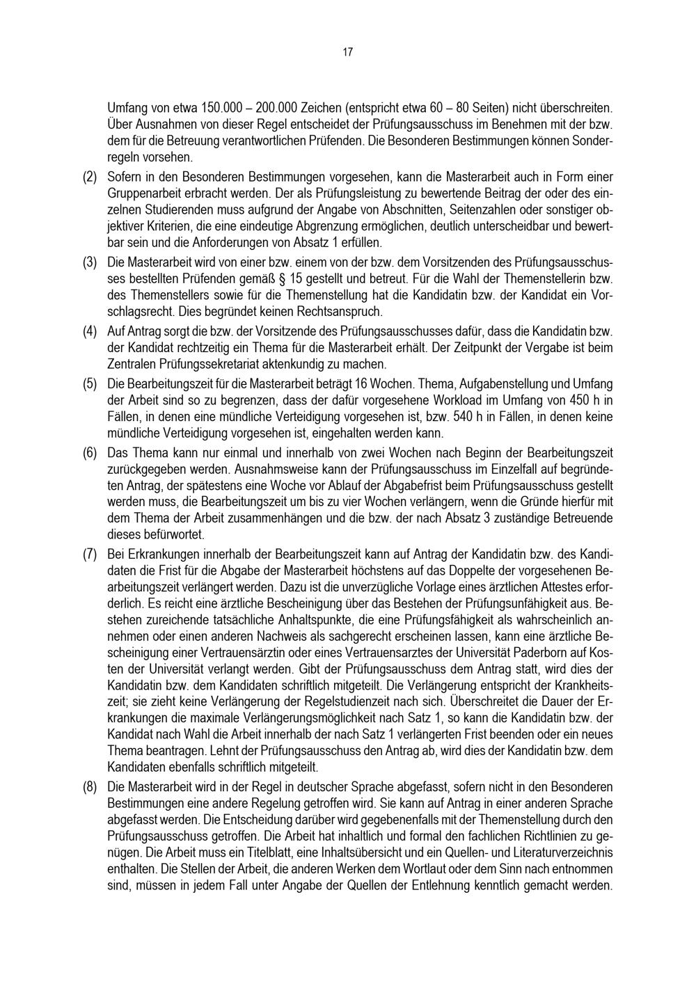 Allgemeine Bestimmungen der Prüfungsordnung für den Masterstudiengang Lehramt an Gymnasien und Gesamtschulen an der Universität Paderborn : vom 31. Mai 2022