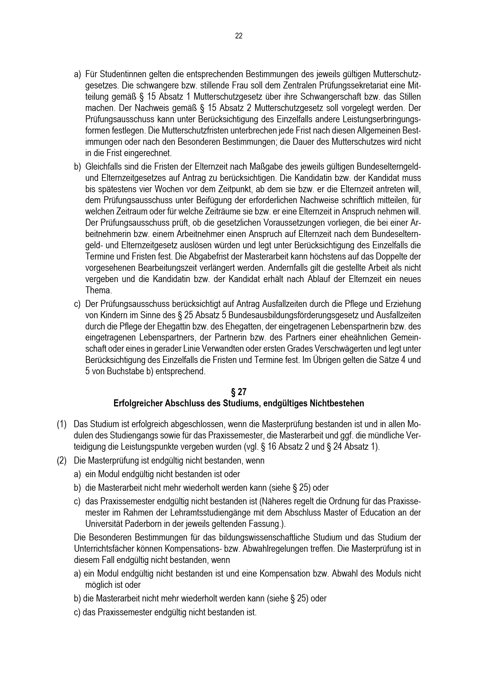 Allgemeine Bestimmungen der Prüfungsordnung für den Masterstudiengang Lehramt an Gymnasien und Gesamtschulen an der Universität Paderborn : vom 31. Mai 2022