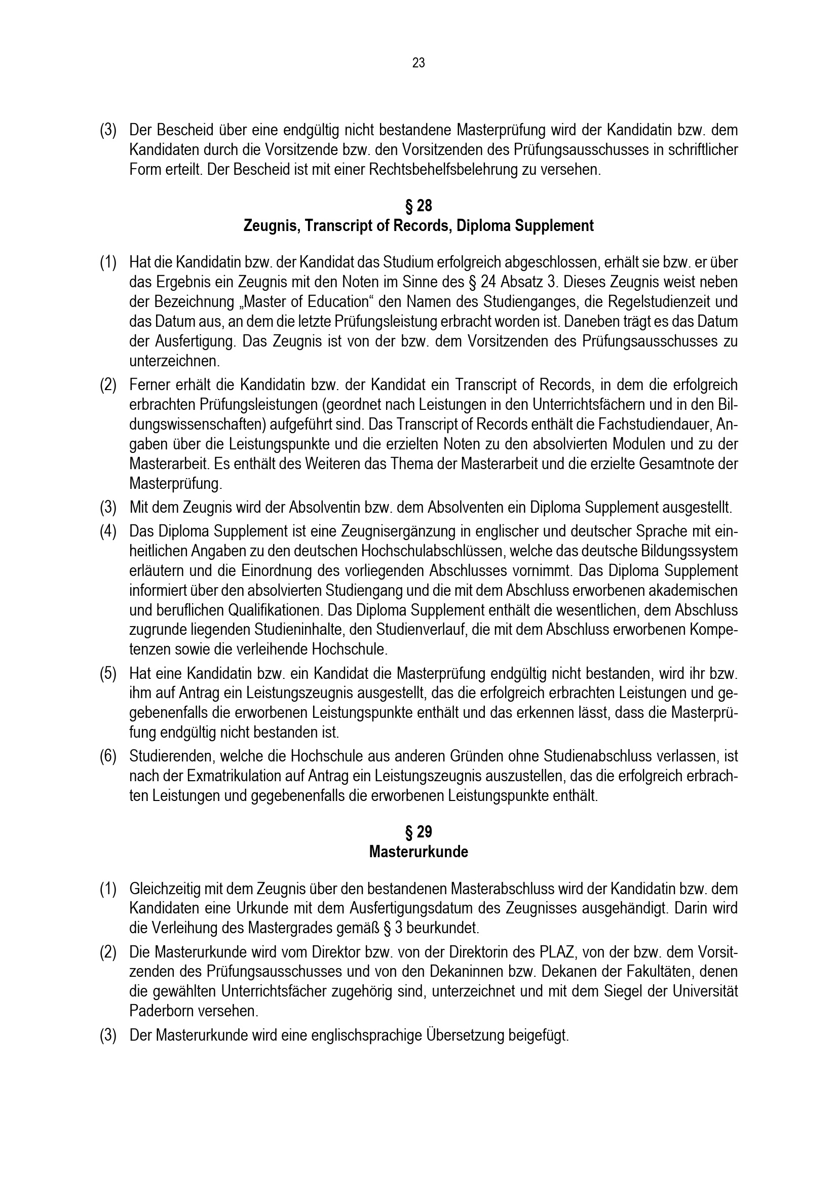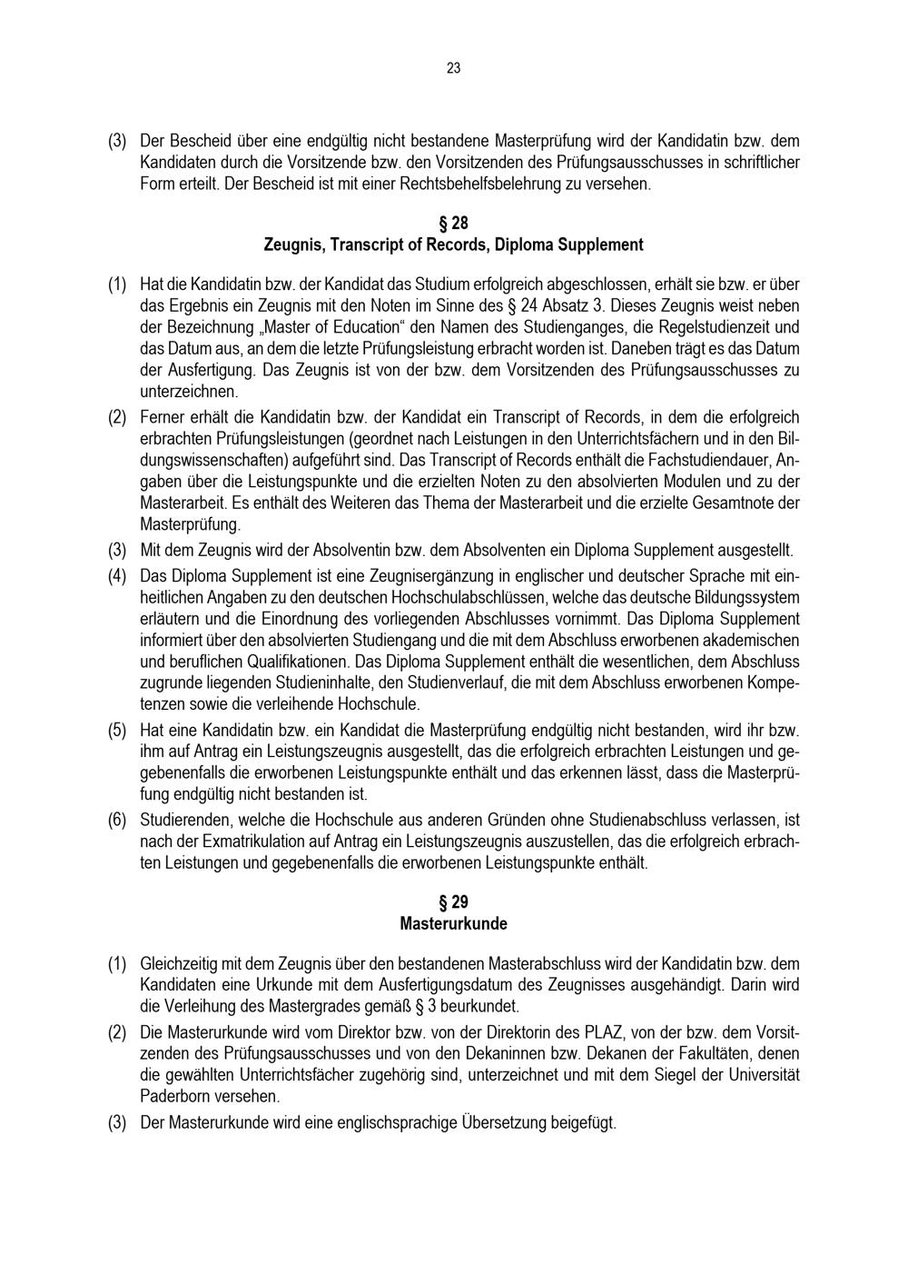 § 28 Zeugnis, Transcript of Records, Diploma Supplement