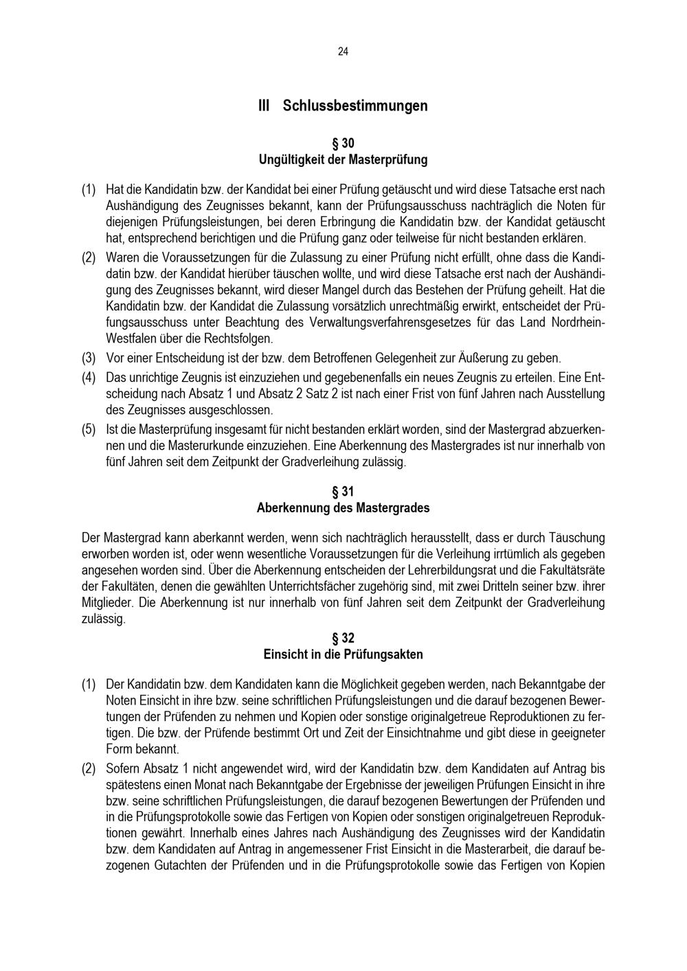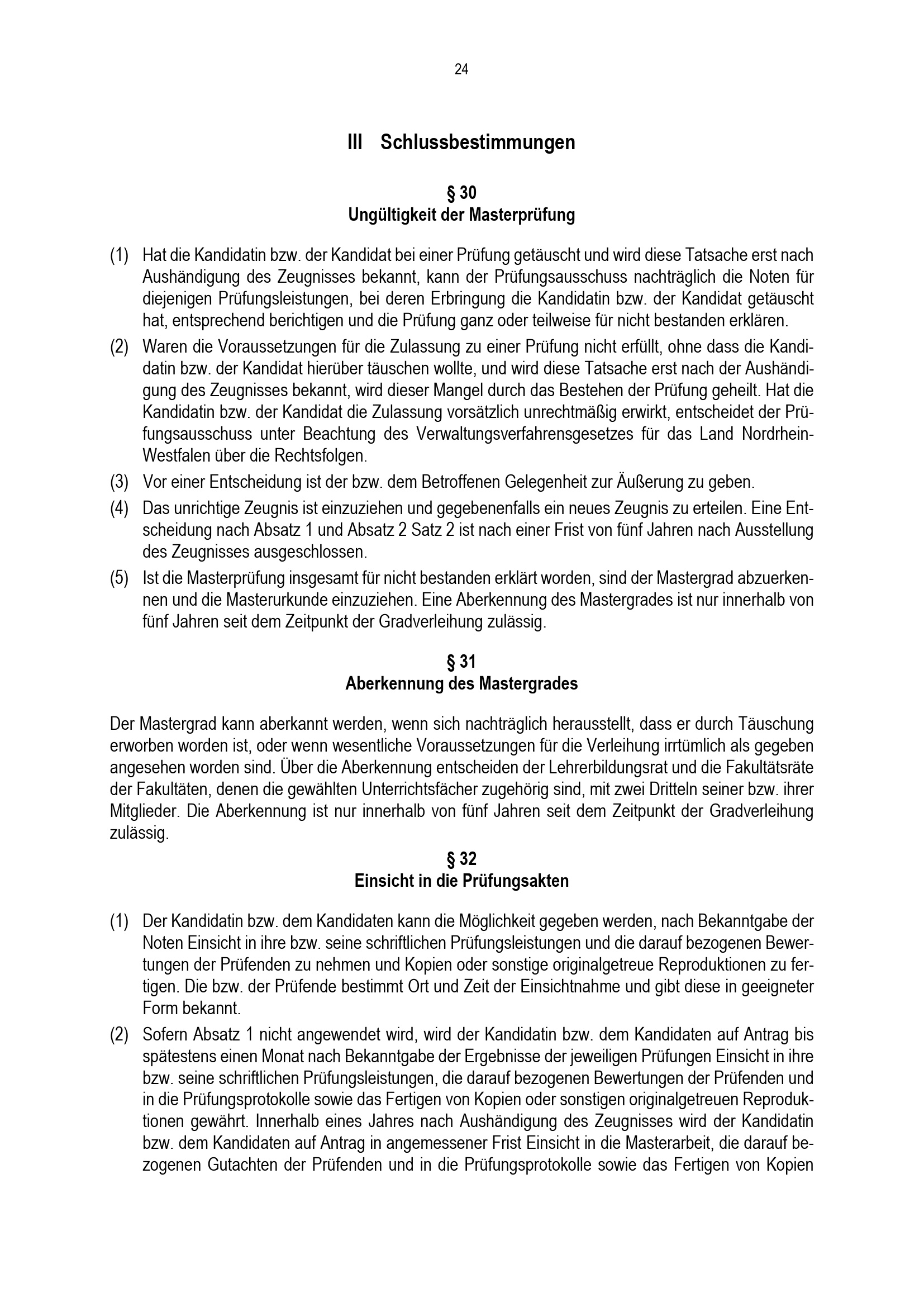 § 30 Ungültigkeit der Masterprüfung