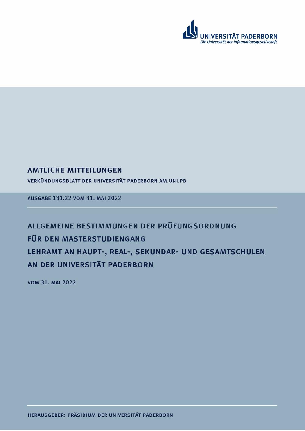 Allgemeine Bestimmungen der Prüfungsordnung für den Masterstudiengang Lehramt an Haupt-, Real-, Sekundar- und Gesamtschulen an der Universität Paderborn : vom 31. Mai 2022