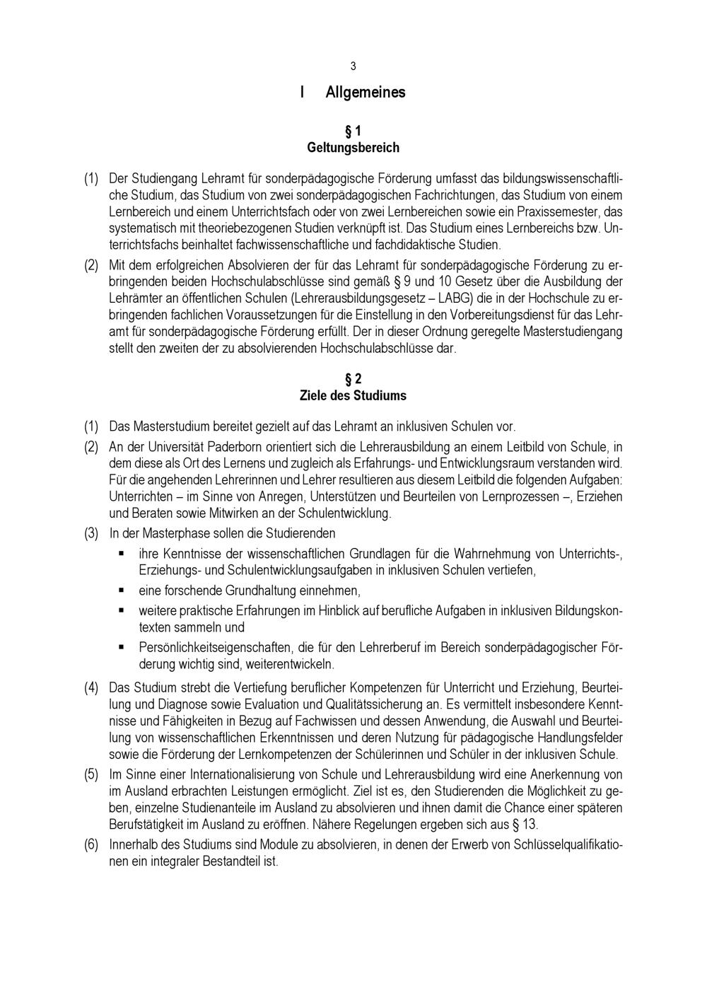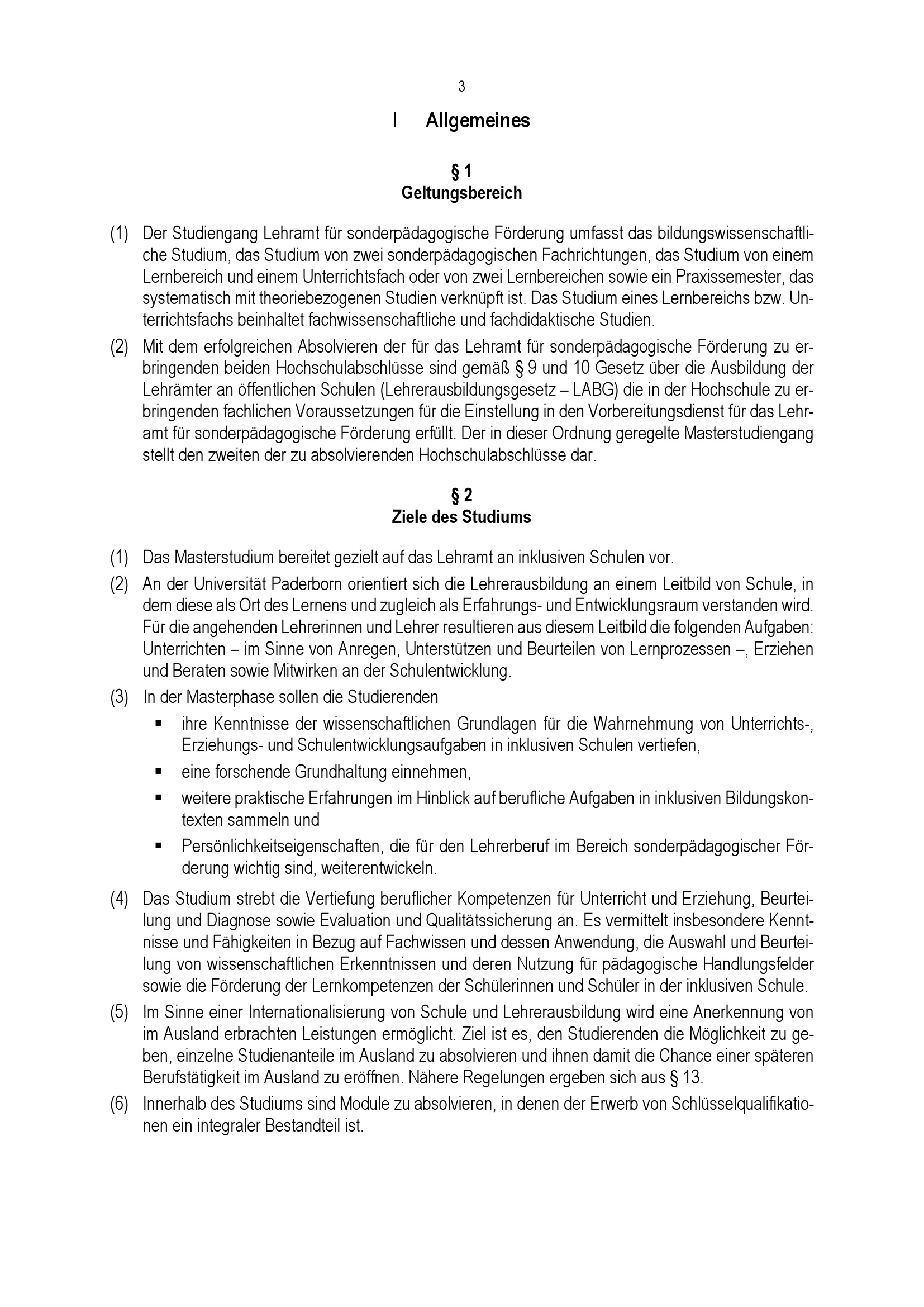 Allgemeine Bestimmungen der Prüfungsordnung für den Masterstudiengang Lehramt für sonderpädagogische Förderung an der Universität Paderborn : vom 31. Mai 2022