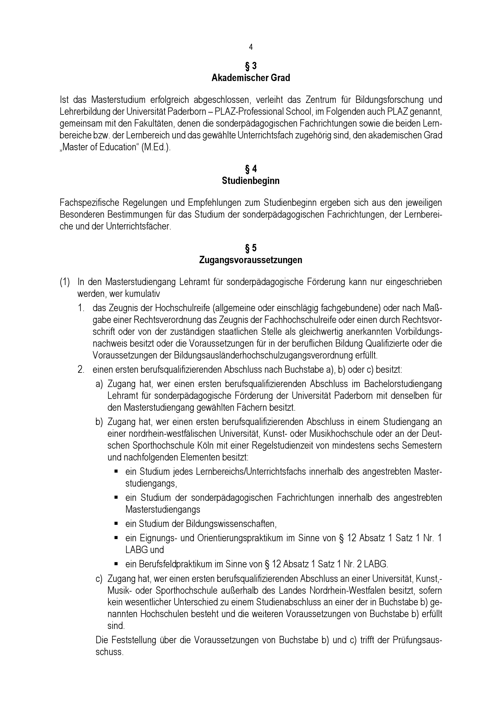 Allgemeine Bestimmungen der Prüfungsordnung für den Masterstudiengang Lehramt für sonderpädagogische Förderung an der Universität Paderborn : vom 31. Mai 2022