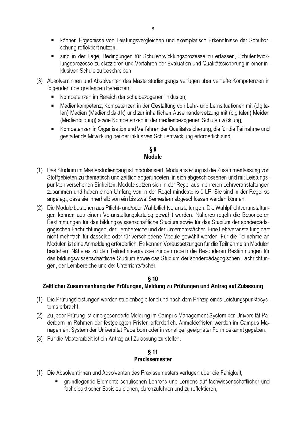 Allgemeine Bestimmungen der Prüfungsordnung für den Masterstudiengang Lehramt für sonderpädagogische Förderung an der Universität Paderborn : vom 31. Mai 2022