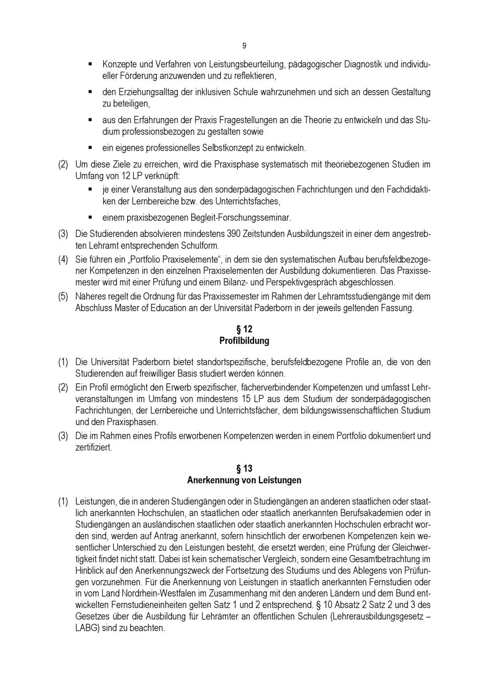 Allgemeine Bestimmungen der Prüfungsordnung für den Masterstudiengang Lehramt für sonderpädagogische Förderung an der Universität Paderborn : vom 31. Mai 2022