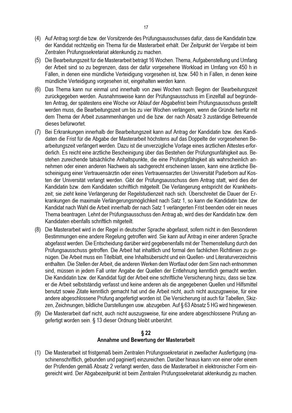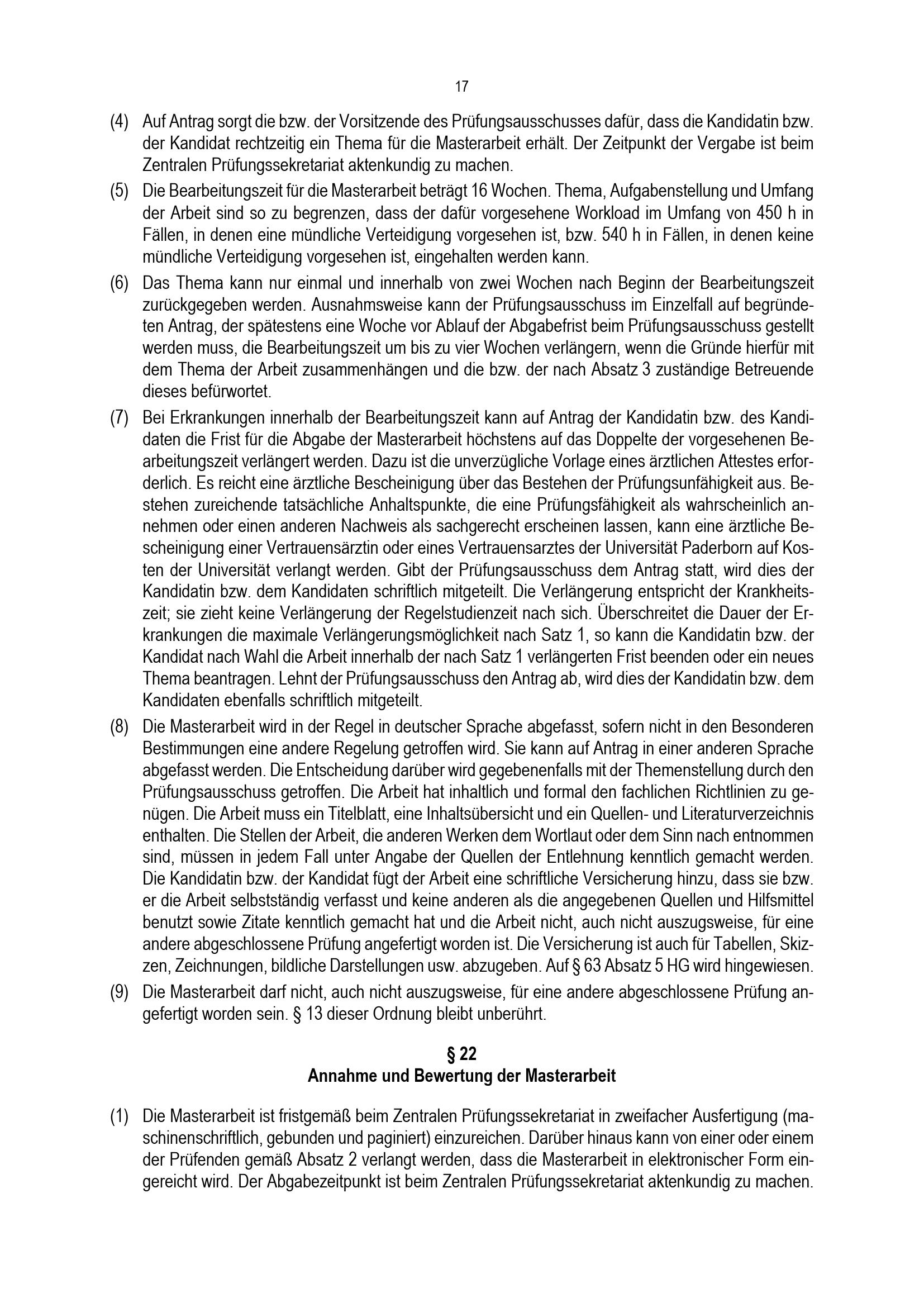 Allgemeine Bestimmungen der Prüfungsordnung für den Masterstudiengang Lehramt für sonderpädagogische Förderung an der Universität Paderborn : vom 31. Mai 2022